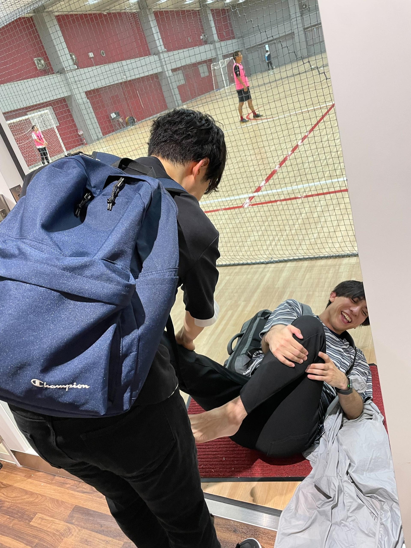 最後、靴を履き替えるタイミングで足をつるメンバー。入口を塞いでしまいごめんなさい!