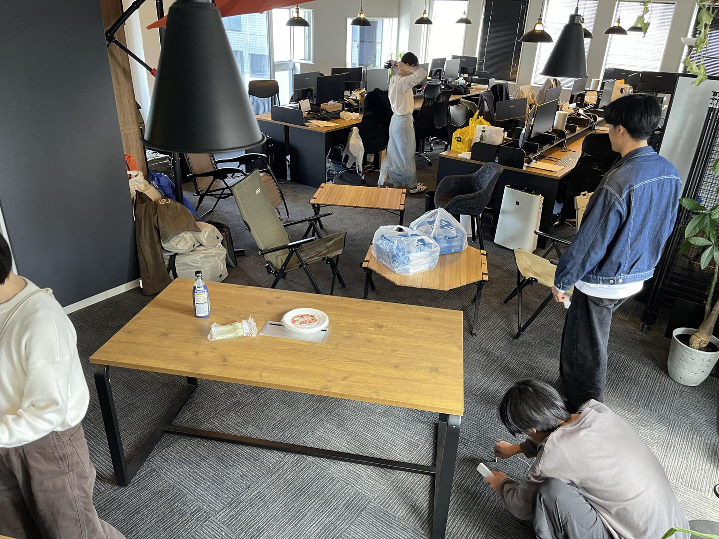 普段は会議で使っているテーブルを移動して食事スペースにしたり、