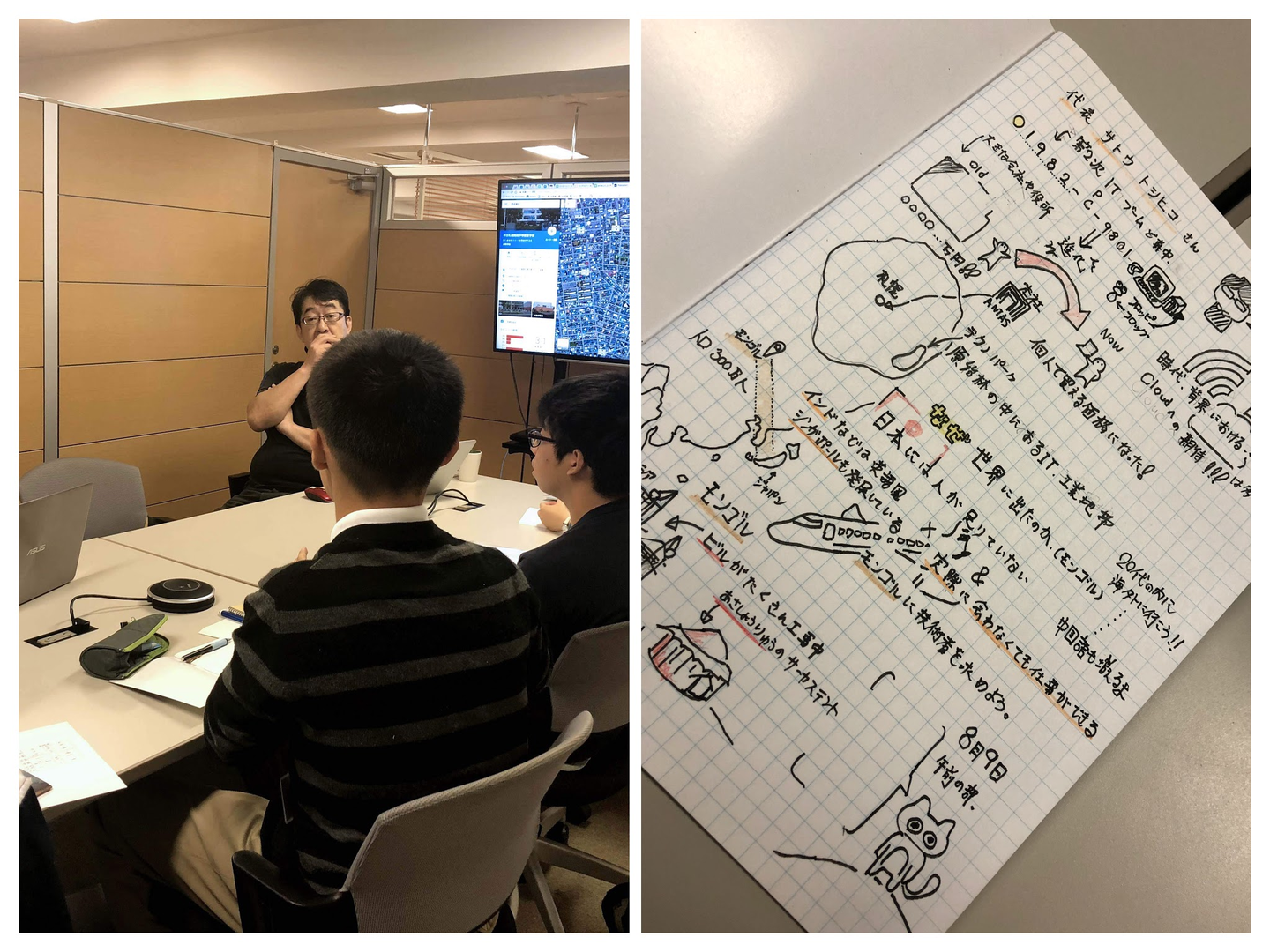 社長のお話を聞きながら、なんとノートを上手にまとめる生徒さん。イラスト(社長の似顔絵)まで、話を聞きながらスラスラとまとめあげていました。才能ですね。(私も欲しい…