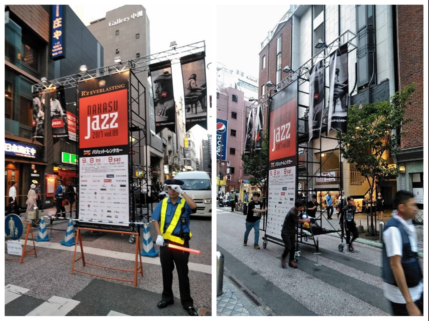 2017年は9/8-9の二日間開催。いつもの街並から一転、一部臨時交通規制がかかり、あわただしく設営がはじまります。