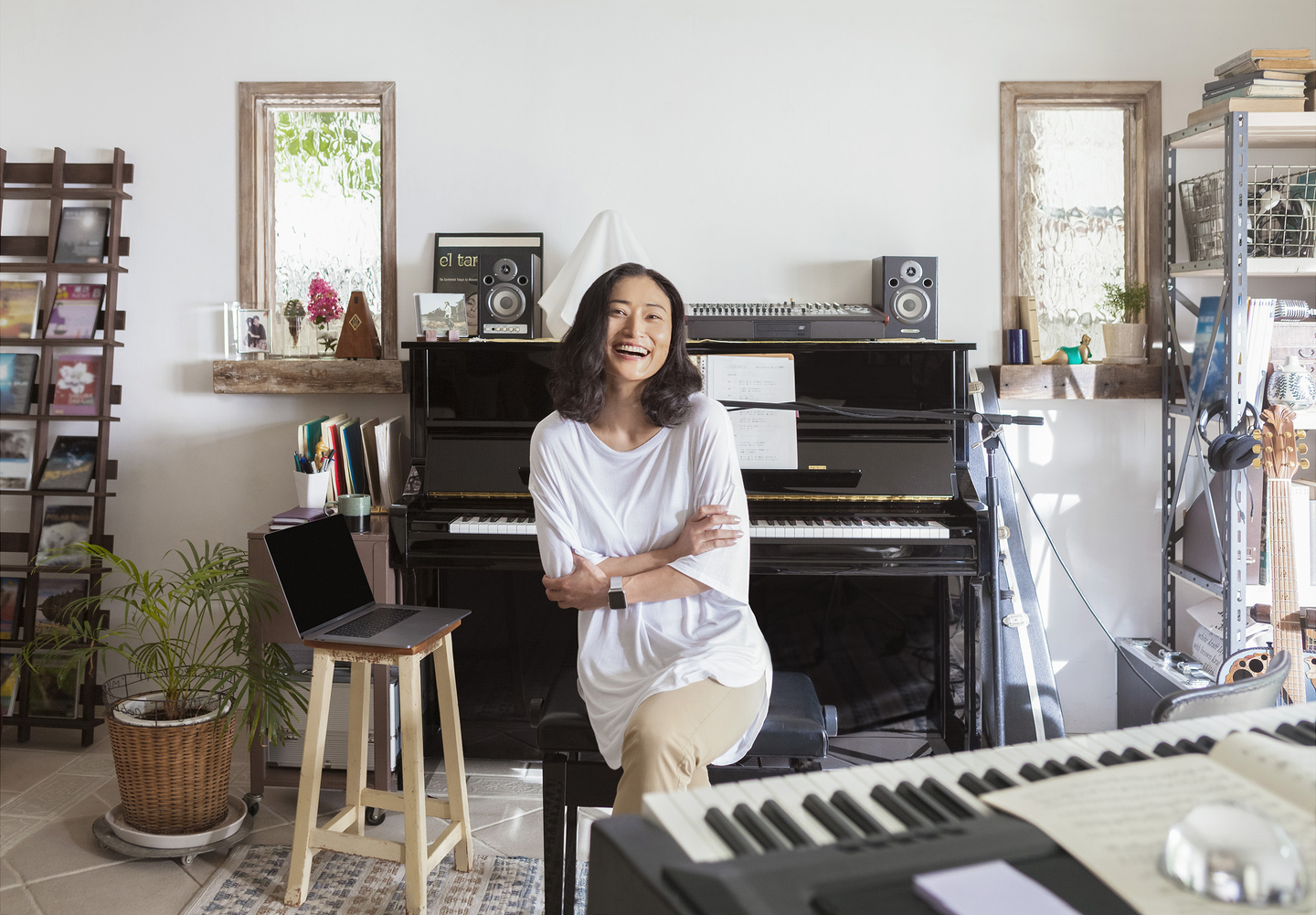 「目が覚めると好きなコーヒーを飲み、ほっと一息ついてからピアノの前に座り曲作りに没頭する、それが私の朝の過ごし方です。その後、気持ちを切り替えたら、自宅でのApple At Homeアドバイザー(在宅勤務)としての仕事が始まります」