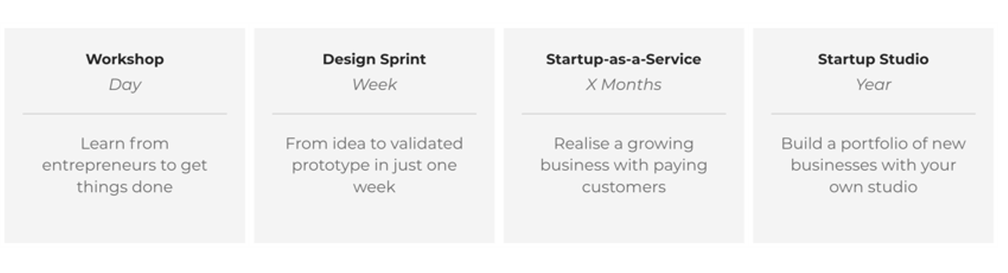 クライアントのニーズに合わせて、1日のワークショップから、年単位のスタートアップスタジオまで幅広くサービス提供していることが特徴と言えます。 今回はオランダの企業でしたが、アメリカ以外でも各国でスタートアップスタジオが実績を産みはじめているようです。