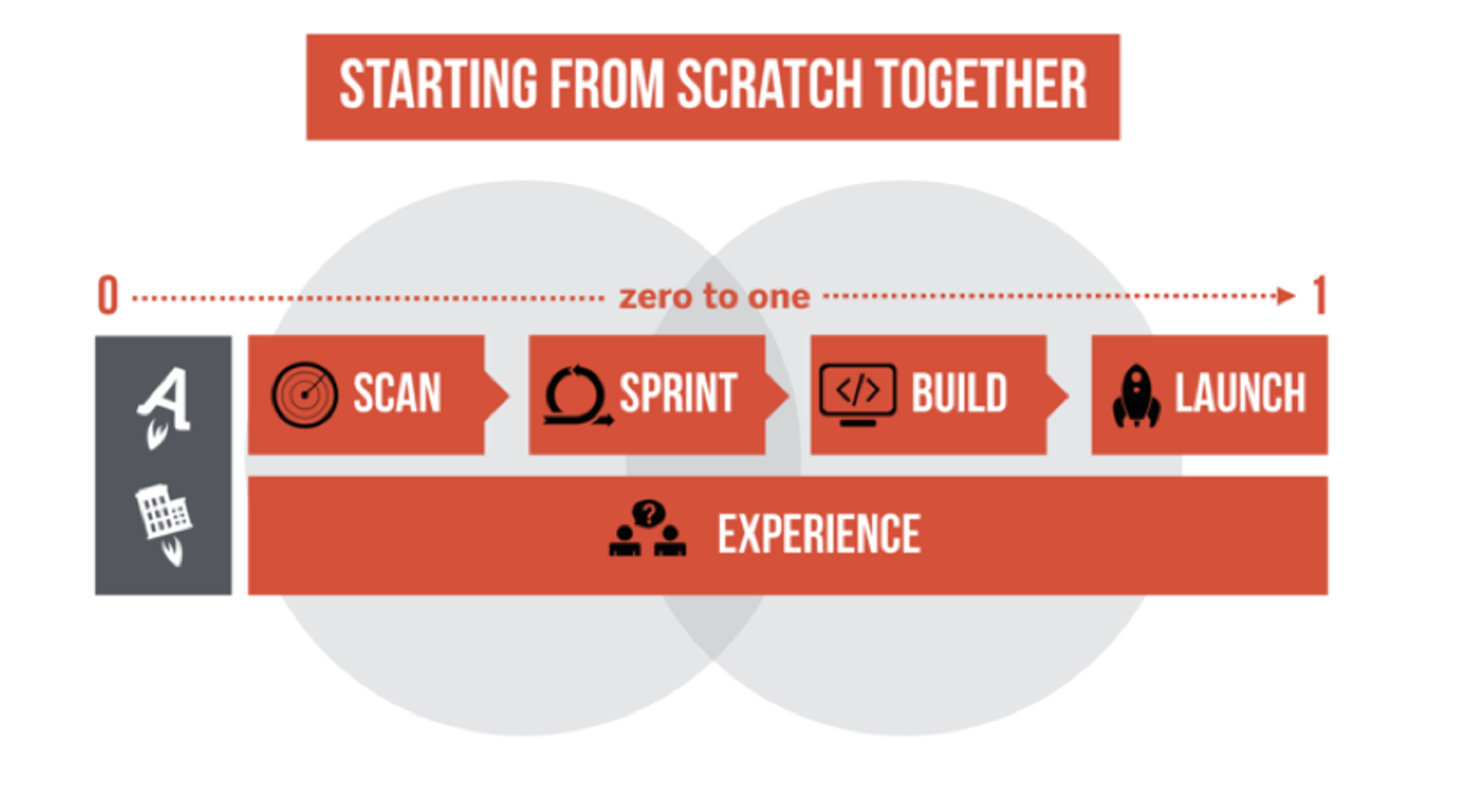 Aimforthemoonでは、事業創出のプロセスを「SCAN」「SPRINT」「BUILD」「LAUNCH」の4段階に定義しています。