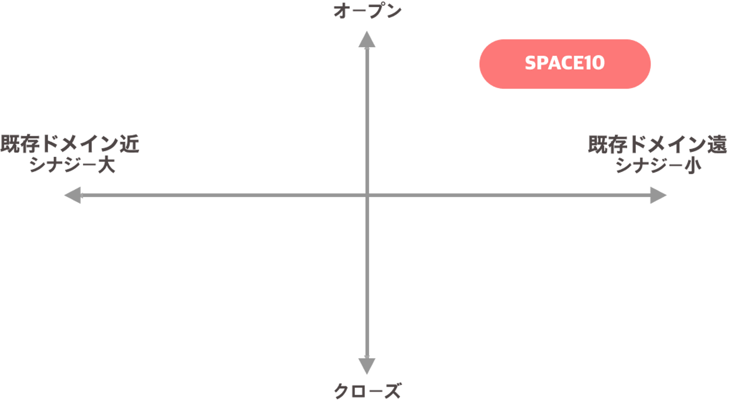 IKEA本体の社員が一人も在籍せずに独立した運営をしている点や、外部から様々な人材を集めて開発している点から、非常にオープンな組織であると言えるでしょう。また、家具を中心としたライフスタイルをIKEA本体の既存ドメインと定義すると、本組織では家具に縛られずにライフスタイル全般で研究開発を行なっており、既存ドメインとは遠いと言えます。