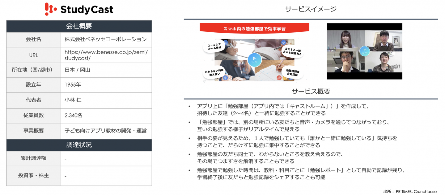 StudyCastは、ベネッセが提供する中高生向けの学習サポートアプリです。
