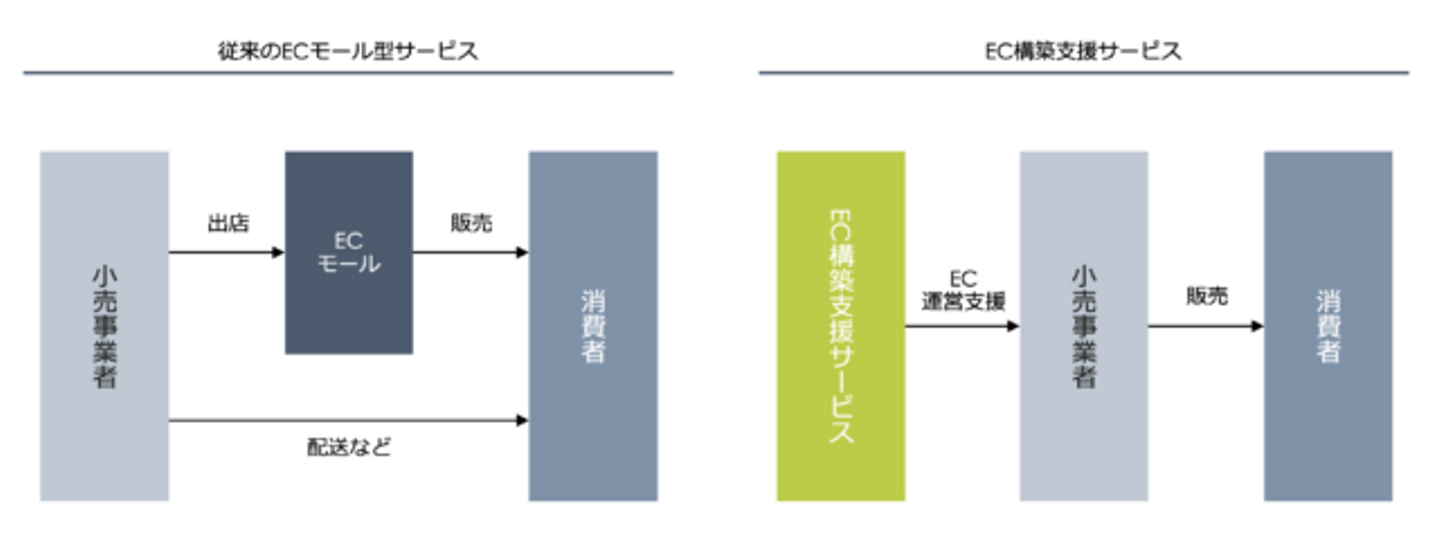 上記のような状況を踏まえて、現在、EC構築支援サービスへの注目が集まっています。