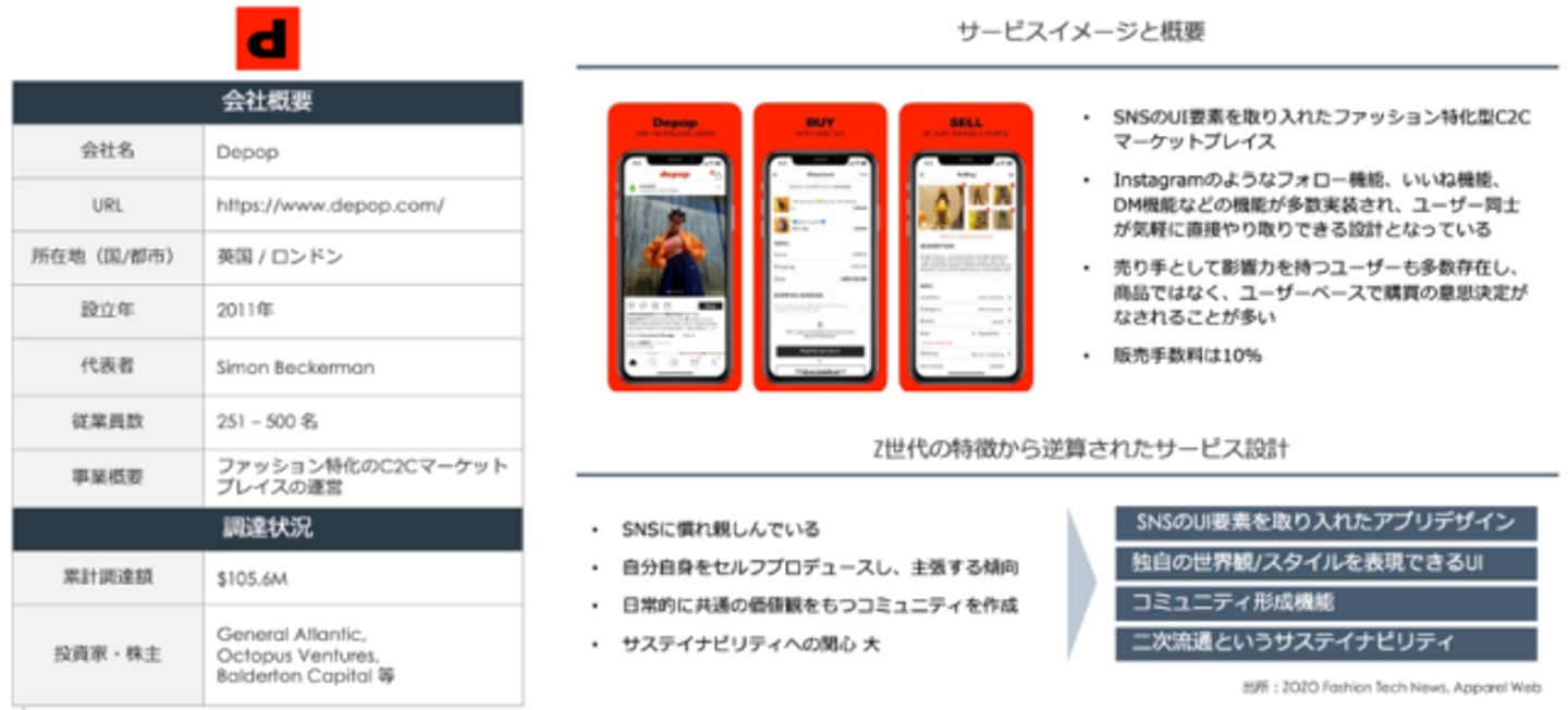 Depopは、SNSのようなUI/UXを取り入れることで、Z世代を中心に多くのユーザーを獲得しているファッション特化型ソーシャルコマースです。ユーザー数は全世界で1,500万人以上を誇り、9割以上が1995~2009年生まれのZ世代となっています。