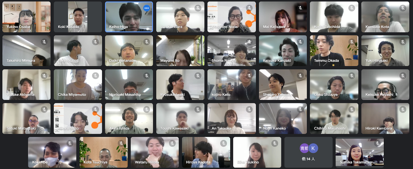 一般的には入社した際に配属されたチーム内だけで自己紹介をして終わってしまったり、全社に向けて簡単な紹介や挨拶のみになったりすることもあると思います。アーキベースでは全社員で顔を合わせて自己紹介をし、その人の人生曲線を知ることでウェルカム感の醸成やコミュニケーションのきっかけづくりに活かしています。