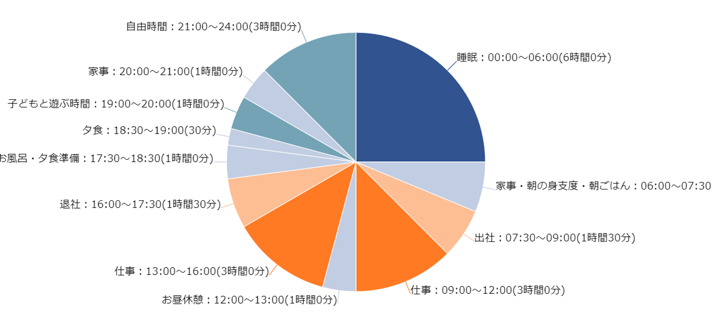 伊藤:上のグラフが普段私がオフィス出勤している日のスケジュールです。私は週2回出社で週3回在宅勤務なんですが、旦那は私が出社している日に在宅勤務をして、私が在宅勤務の日には、出社しています。子どもが急な体調不良になったときにすぐ送り迎えできるように、旦那か私のどちらかが在宅勤務している状態ですね。