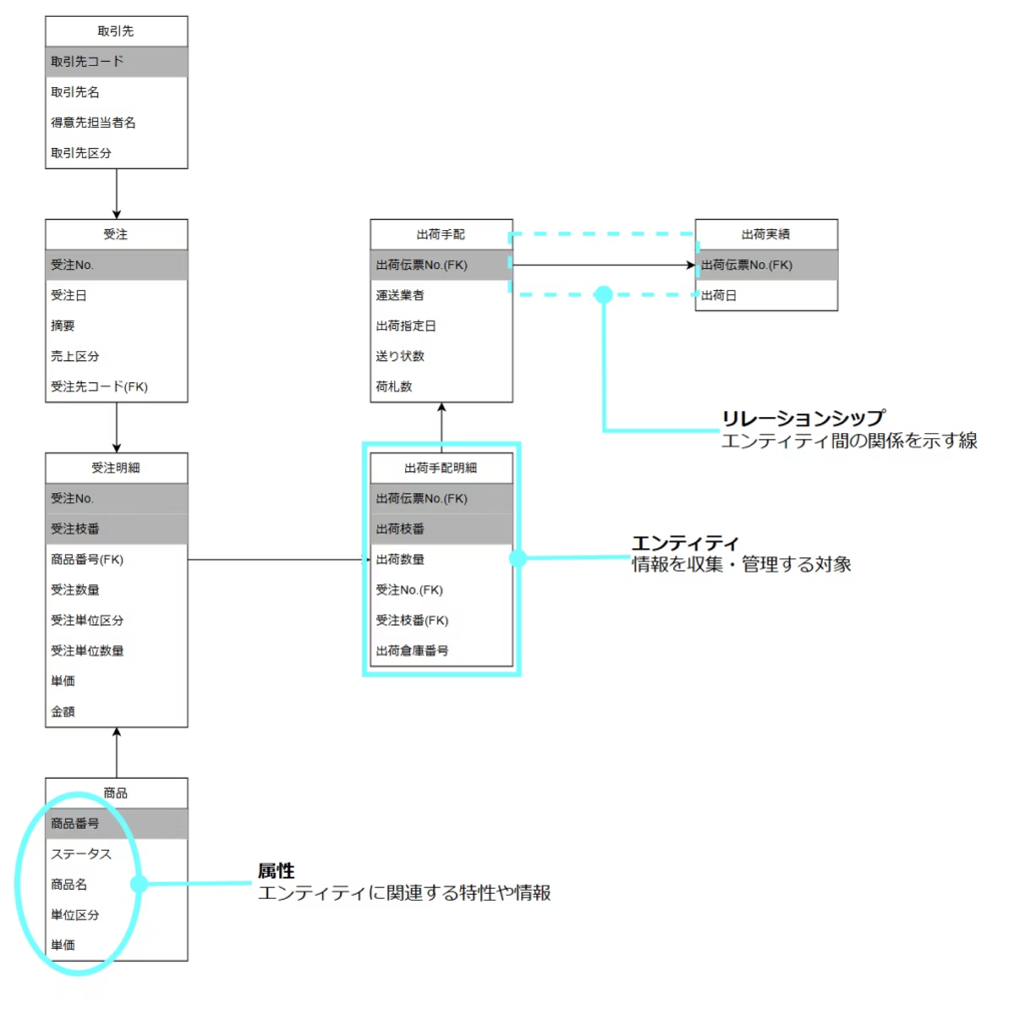 ・ユーザーが理解しやすい業務用語を使用データの流れや関係を簡潔に表現