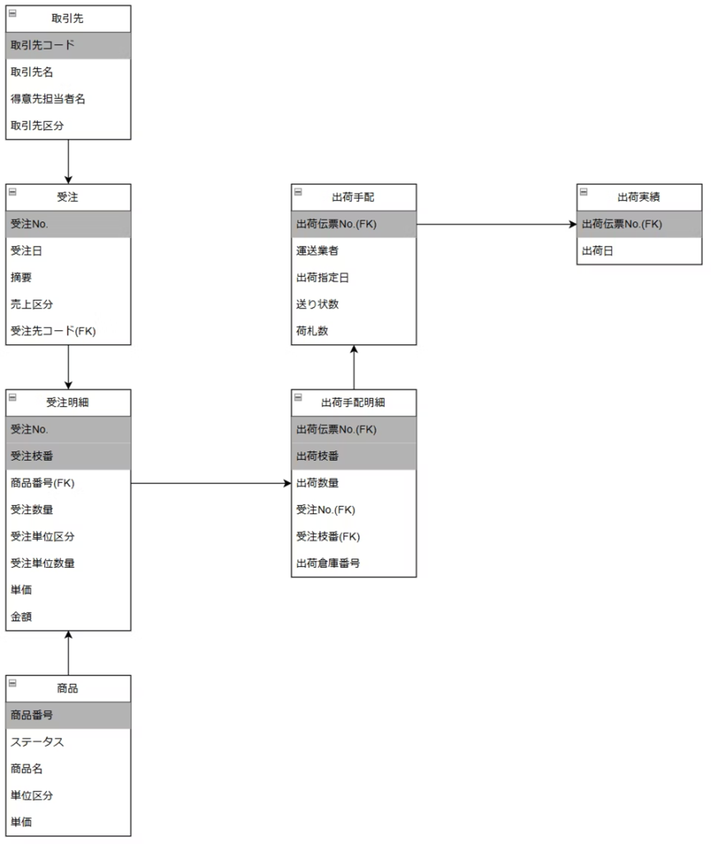 定義:論理データモデルでは、概念データモデルで決めたビジネス要件を元に、データベースの構造を具体化します。エンティティ間の関係や属性を整理し、データベースとしてどのように管理するかを考えますが、まだ技術的な詳細(使用するDBMSなど)は考慮しません。