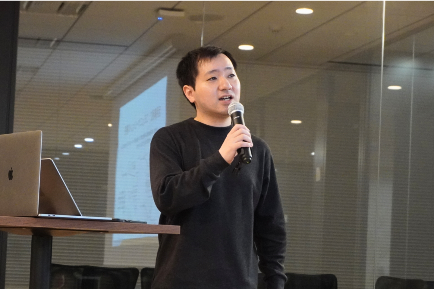 今回は今年最後のTOTとなり、東京本社と福岡支社から合計4名のエンジニアらが登壇しました。各登壇者が自らの研究内容や社内で共有したい知見について発表し、活発な情報交換の場となりました。