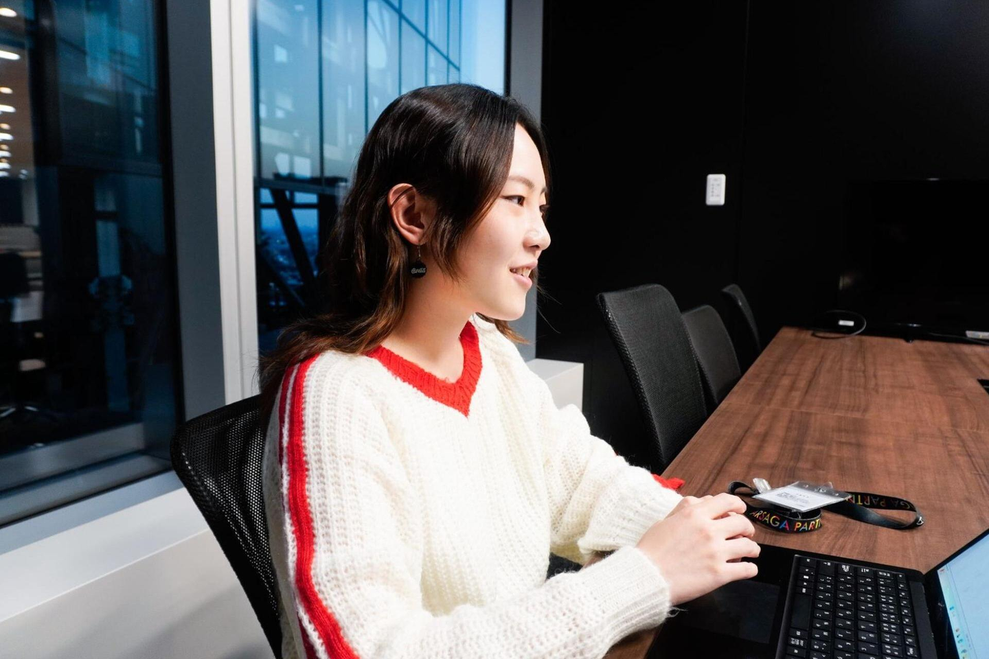 入社当初、日本語を使う場面がこんなに多いとは予想していなかったので、少し驚きました(笑)。当時は日本語に自信がなかったため、特に雑談の中で理解できない日本人ジョークに戸惑うこともありました。しかし、そうしたコミュニケーションにも積極的に関わりたいと思い、交流の機会を意識的に増やしていった結果、今ではだいぶ慣れてきました。