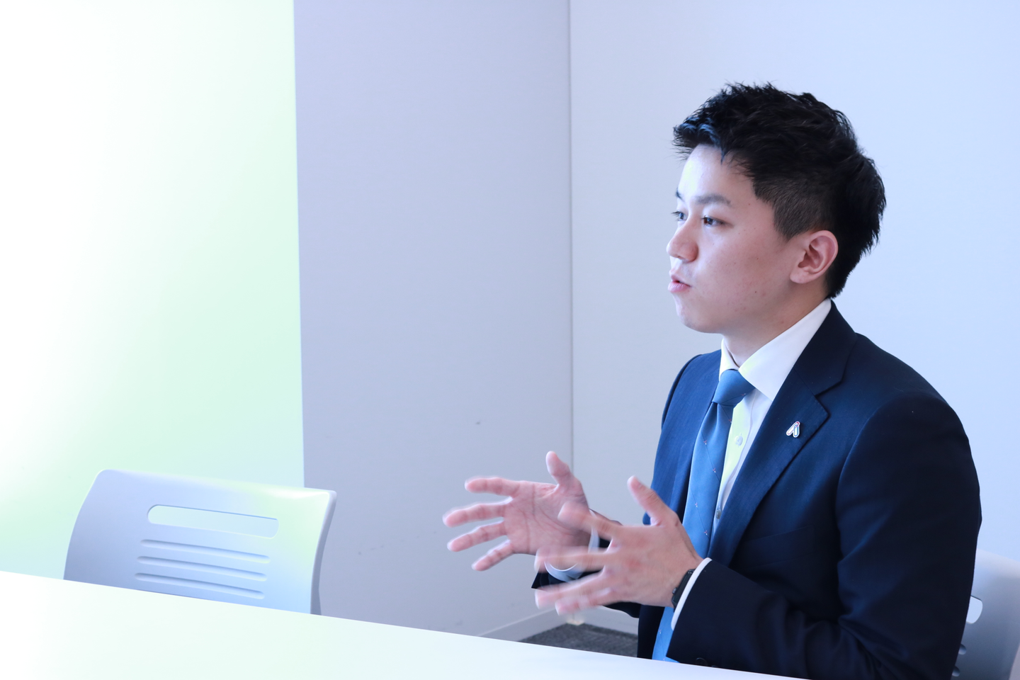 「就職活動では、複数の業界にエントリーしたものの、なかなか自分が行きたい業界を絞ることが出来ませんでした。あしたのチームが扱う、評価制度が提案商品となると、お客様の業界は様々です。さらに、自社にも導入している評価制度のため、自信を持って提案できる。そして、多くの頑張っている人たちが公平に評価されるというのは、正に自分が思い描いているものでした。」