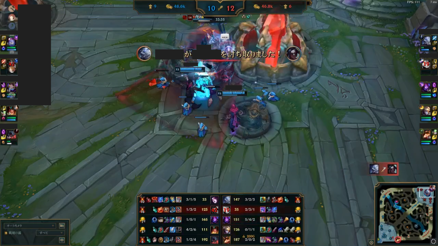 卓球は1対1か2対2なのに対し、LoLは5対5の10人でプレイしています。