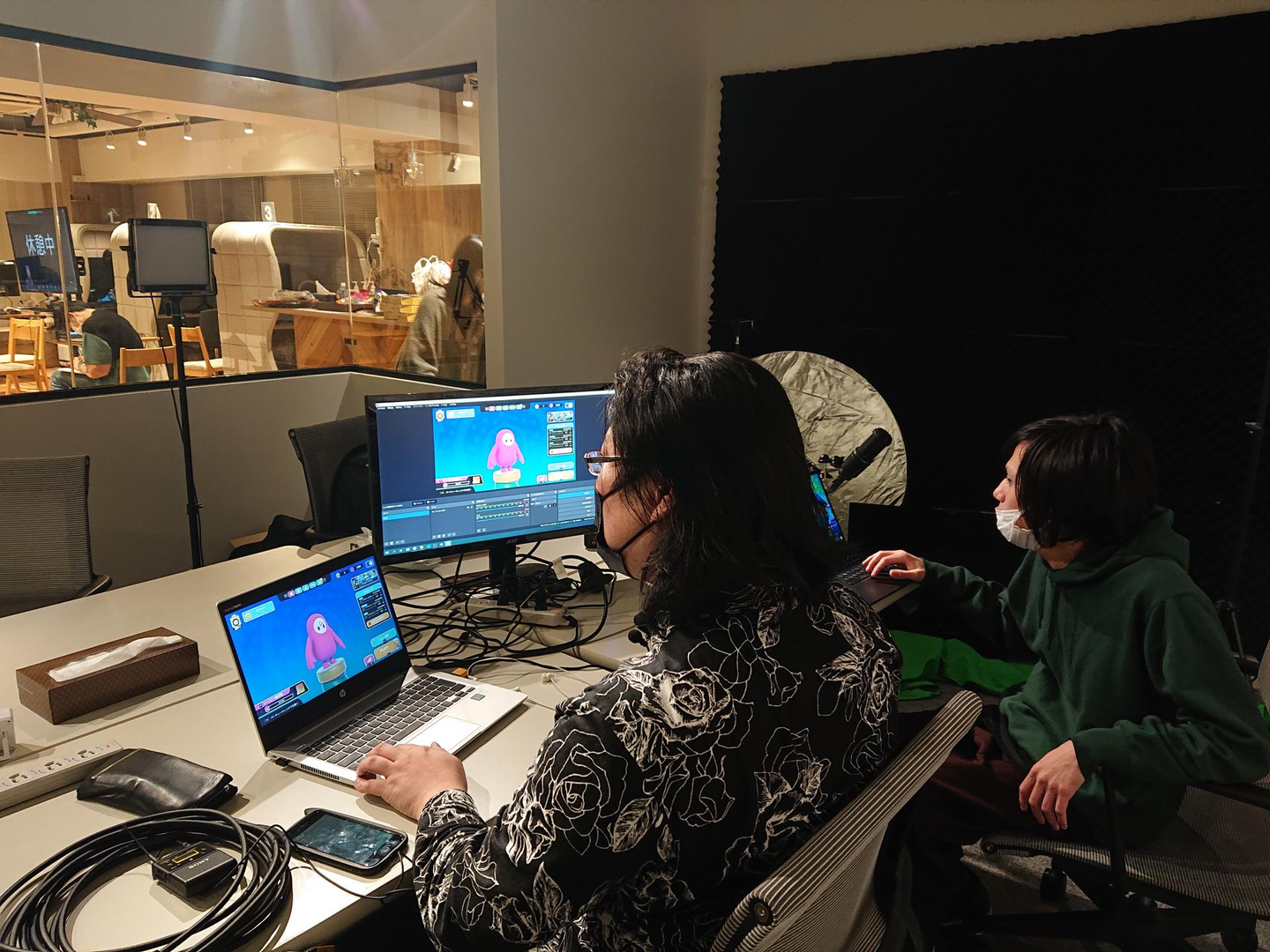 スタジオからグループ対抗フォールガイズの実況を担当してくれた番原さんと選手情報の伝達と集計を担当してくれた22新卒神田君↓