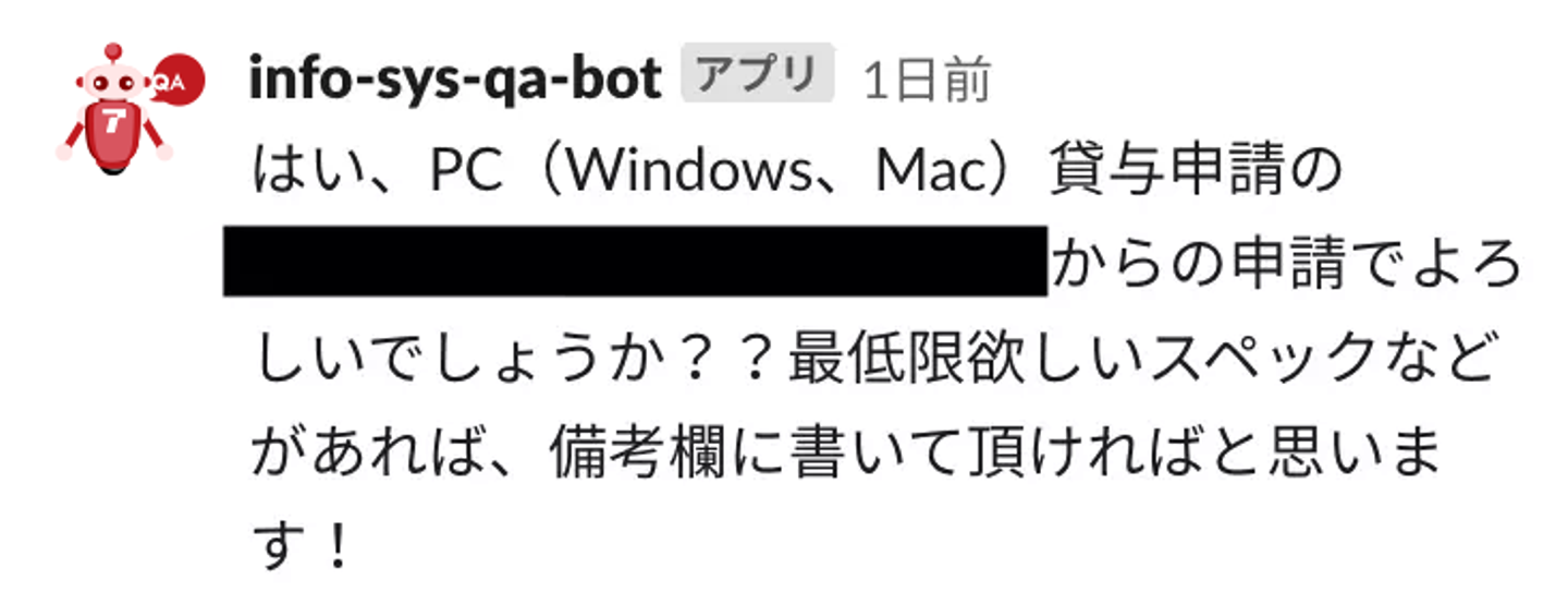 FAQ的な質問には「情シスQ&Abot」が返信をしてくれるようになりました!