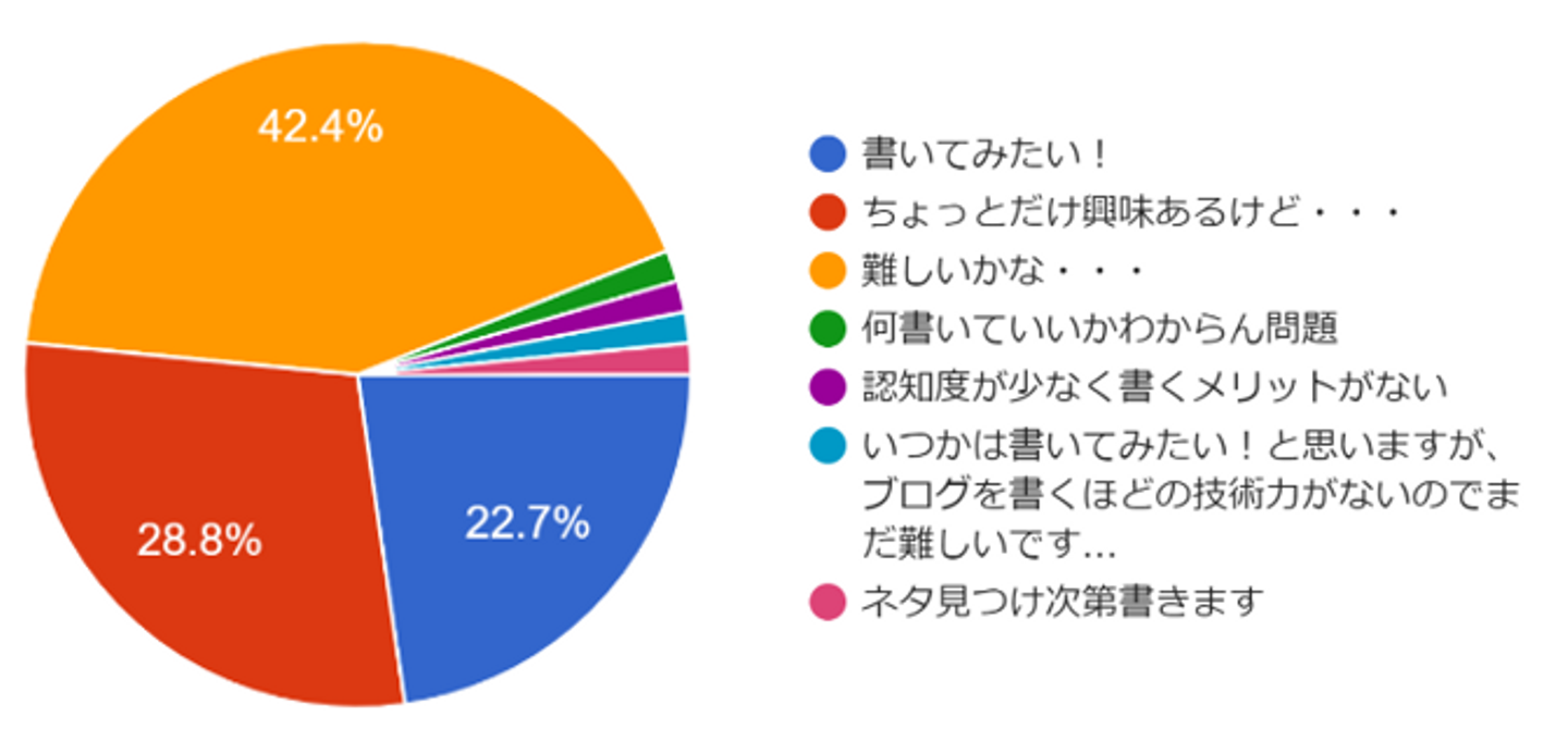 アジアクエストのテックブログ推進チーム*が「記事を書いてみたいと思いますか?」というアンケートをとってみると、以下のような結果になったのです。