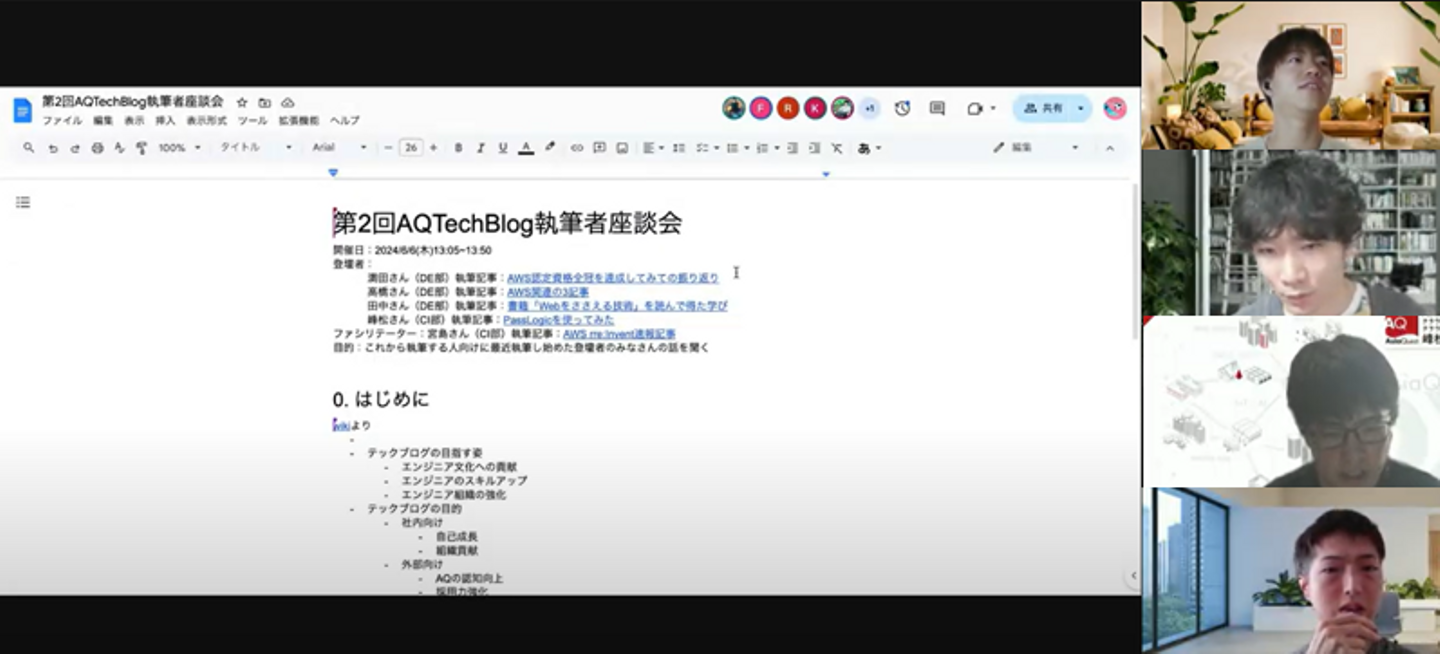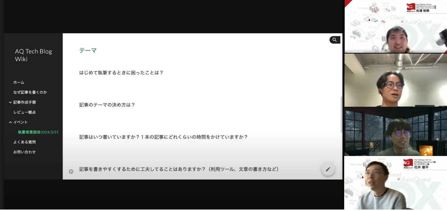 今回は、アジアクエストでエンジニアのテックブログ執筆支援のために取り組んでいる「テックブログ座談会」についてご紹介します!
