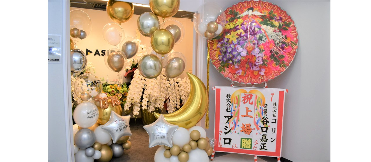 上場日当日は以下の写真の通り、取引先様から数え切れないほどのお祝いを頂き、実感が湧いた一日となりました。