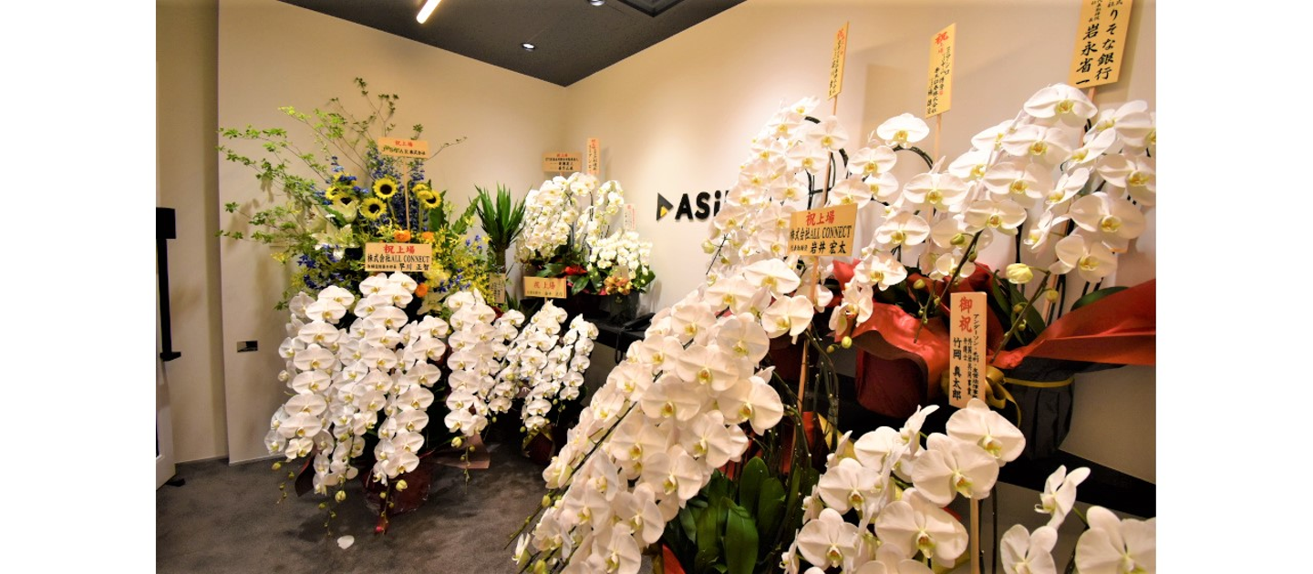 【エントランス写真①:多くのお祝いのお花を頂戴しました。ありがたいです】