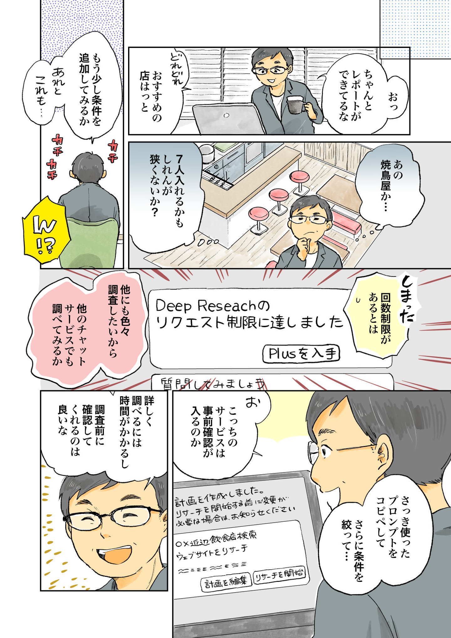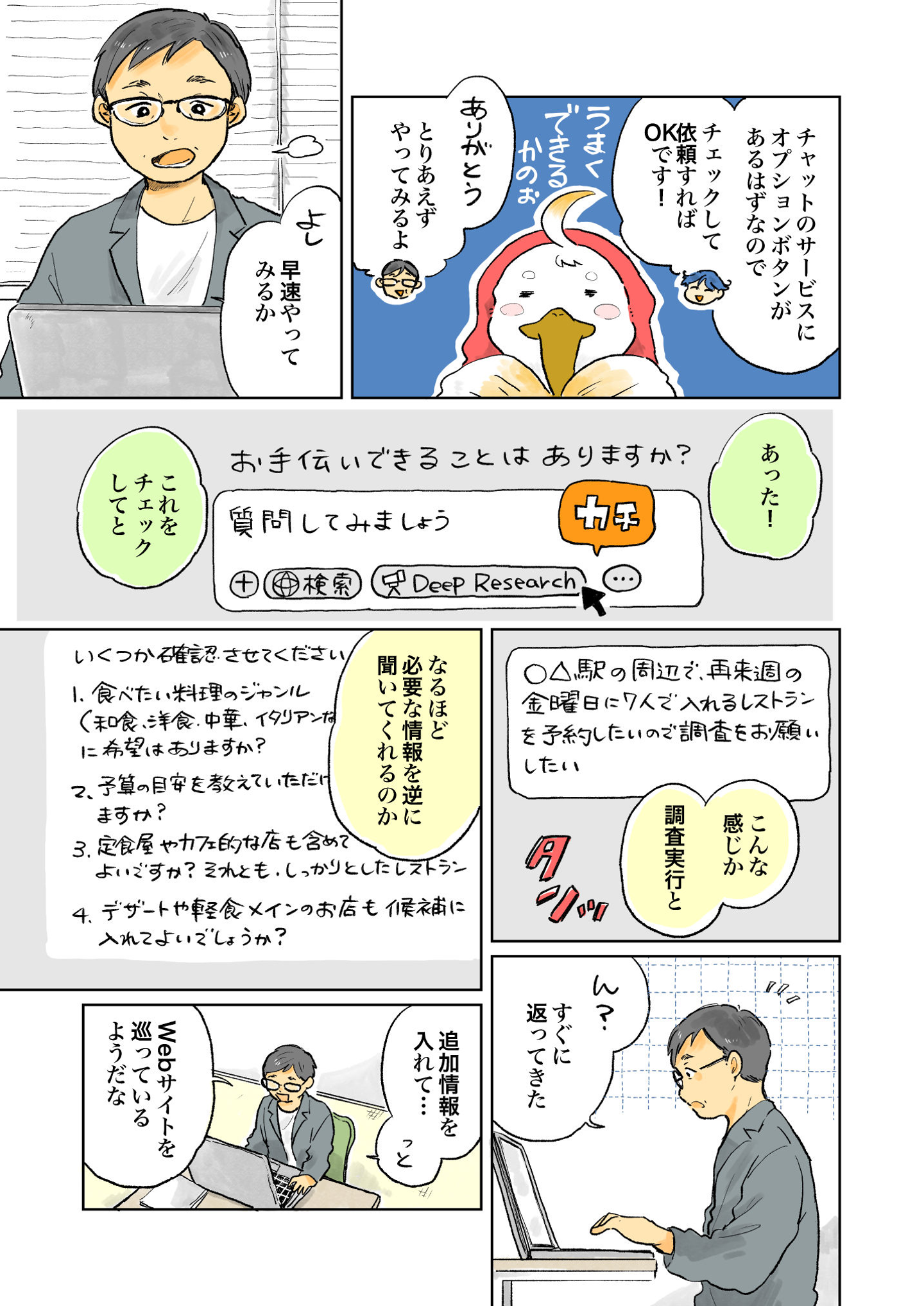 スマホのアプリも色々出てきておるが、Deep Researchのように詳細を調べるのに暫く待つのはあまり向いてないかもしれんの。むしろ、Webサイトで検索する代わりにDeep Researchを使うことも多いようじゃ。Webサイトを作っているものからすれば、検索エンジンへの対応をこれまで重視していたじゃろうが、これからは ”AIにどうサイトを見つけてもらうか” もあわせて考えていかねばならんじゃろう。いわゆるSEO対策の方法も変わっていくじゃろうて。