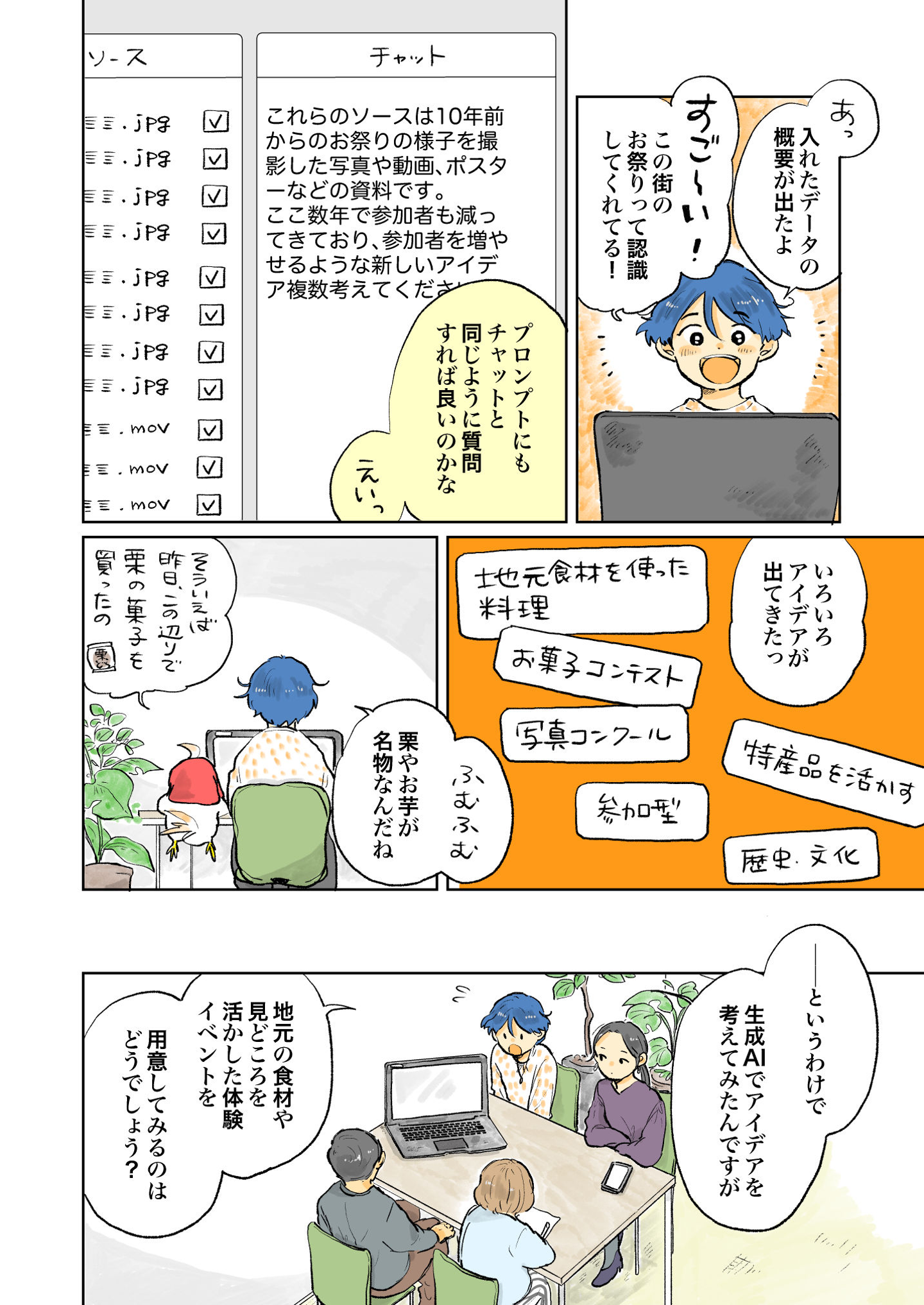 生成AIは既存の仕事を奪うなどと言われておるようじゃが、今回の話ではむしろ昔ならではの仕事を掘り起こすことに使えたようじゃな。アイデア出しに使えば、今まで目がいかなかったところにも改めて気がつけるといった例じゃ。
