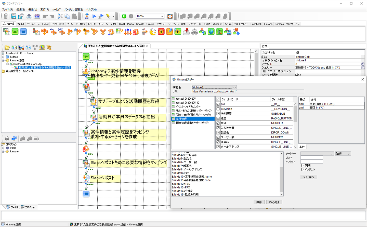 独自のフローデザイナーによるノーコードの高速開発環境を提供 kintoneやSlackをはじめとするクラウドサービスとの連携機能を強化