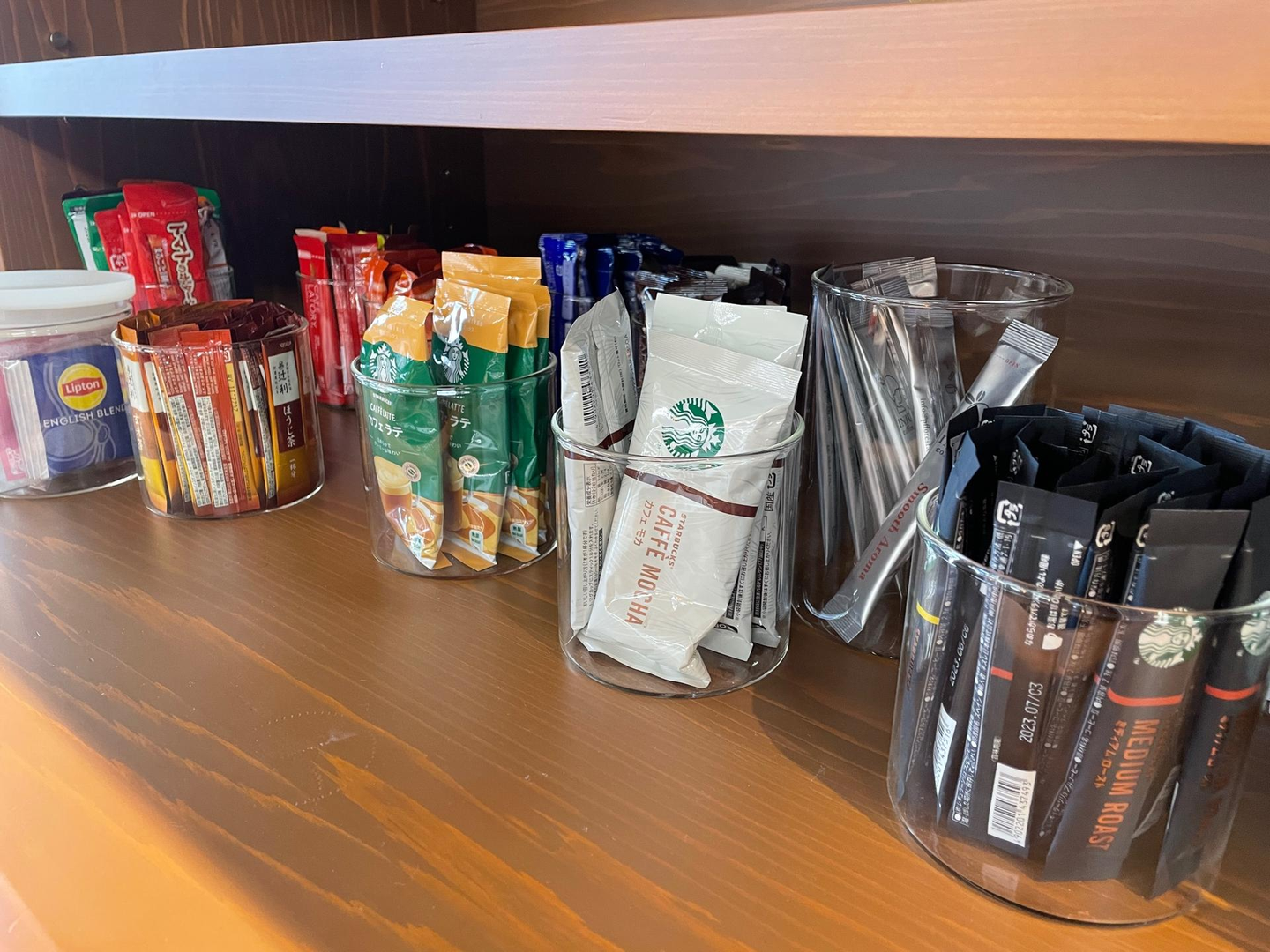 来客用の飲み物がストックされていないという事態を回避したいと考えた、社員によるアイデアです。