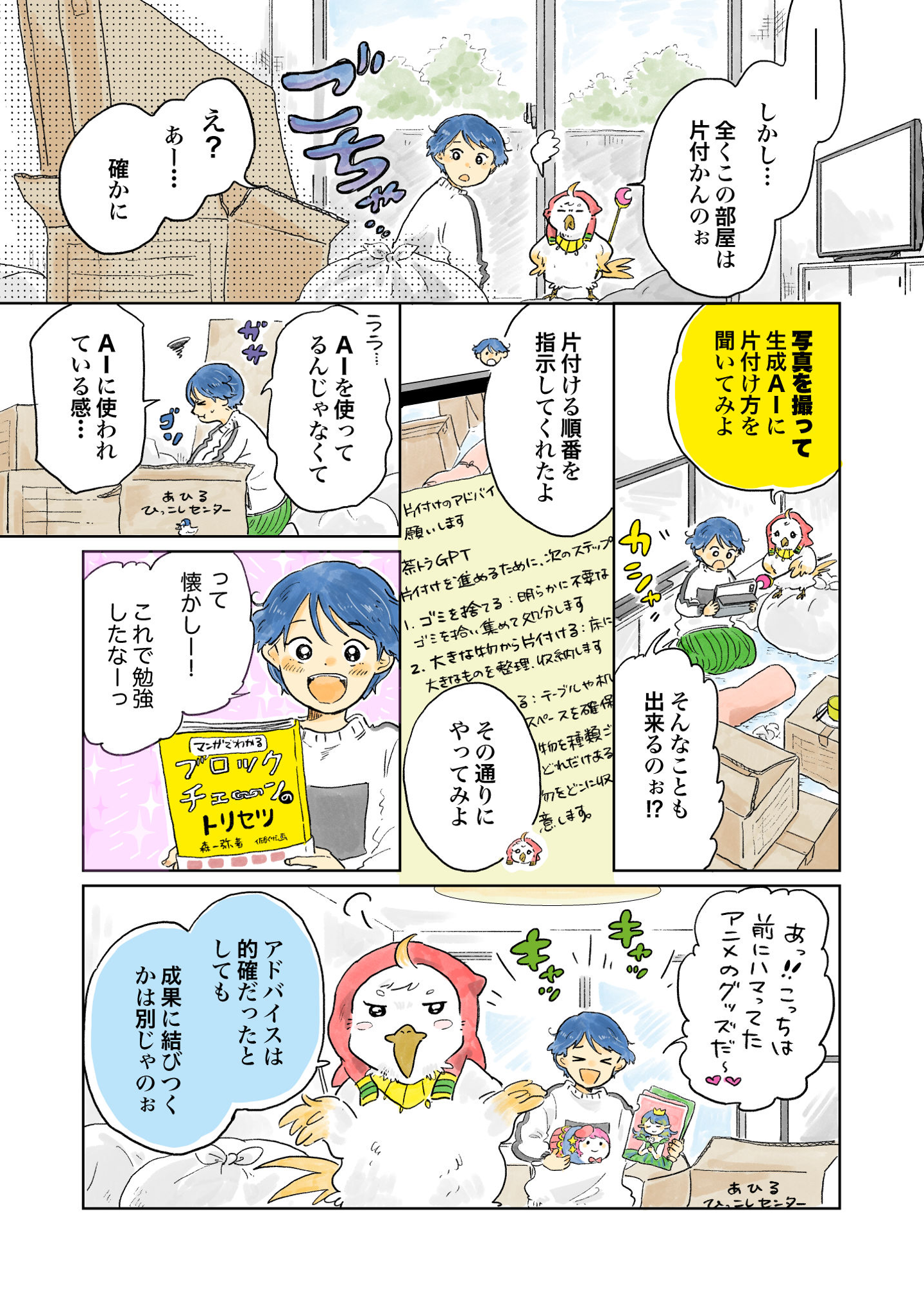 部屋の片付けに生成AIを使う話は、実際にAI界隈で話題になった話です。技術の進歩もそうなんですが、日々色んな使い方をする人が現れたりするので目が離せないし、面白いですよね。我が家では最近、自宅にある食材の写真を撮影して料理のアドバイスをもらってみました。白菜が「キャベツ」と誤認識されるなんてこともありましたが、普段と違った料理を作ることもできましたよ。1回で完璧に答えてくれるのを期待すると「あれ?」ってなることもありますが、そこは「チャット」ですので、会話を続けて修正すればよいだけですしね。