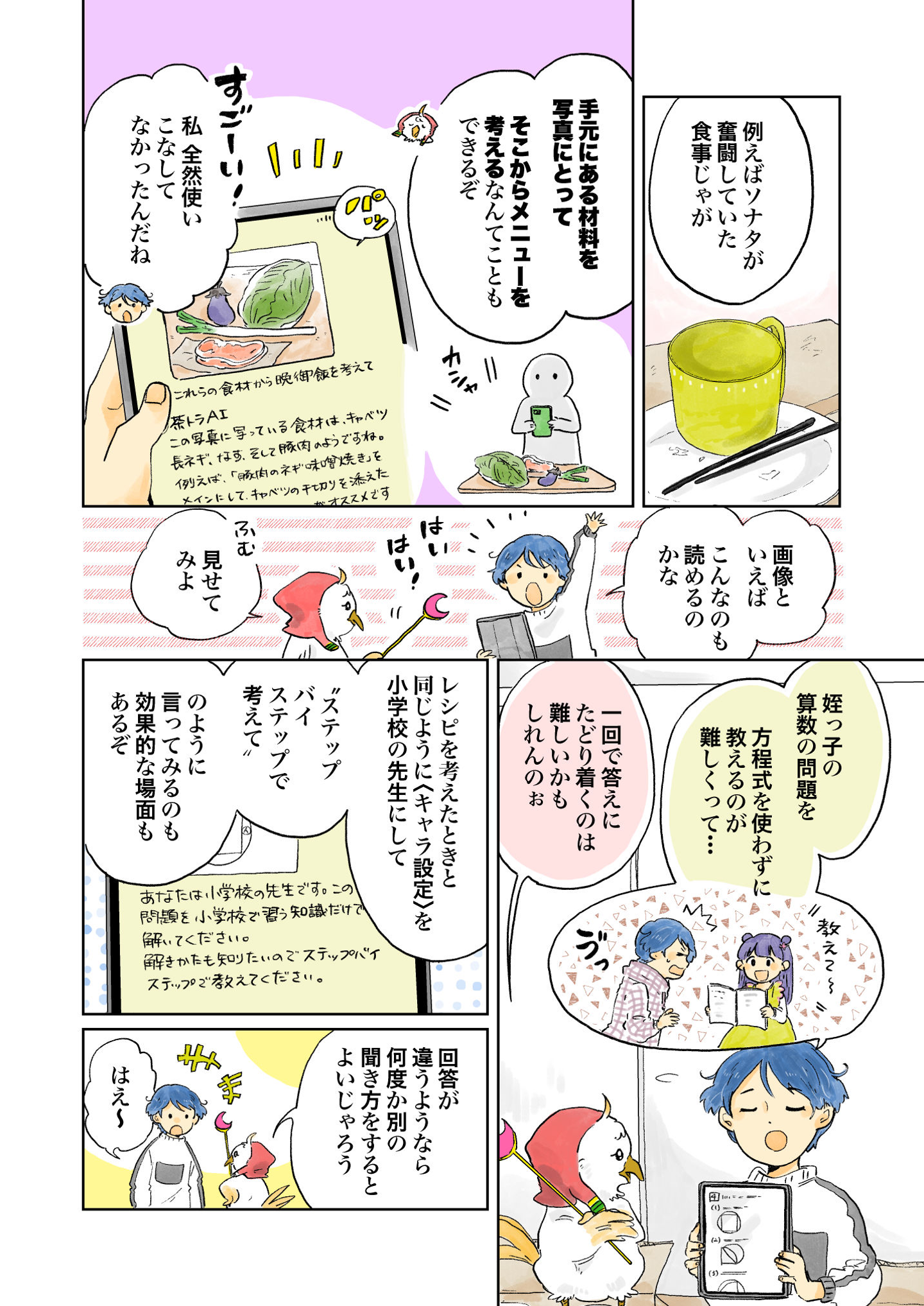 プロンプトエンジニアリングも日々新しいものが出てきています。新しく“発見”されたとも言われます。生成AIは、研究者の中でも明確な手法があるわけではなく、様々な手法を試して論文が出されているというのが現状です。新しく出てきてもすぐに使えなくなってしまうものもあると思われますので、暫く読まれ続けるマンガとしては定番のものを取り上げるように心がけました。とはいえ、ここ最近で私が生成AIを触っていた際に「ステップバイステップで教えて」などの指示を出さなくても、的確に答えをくれる場面にも遭遇したので、しばらく定番と思っていても変わってくることは十分ありそうです。