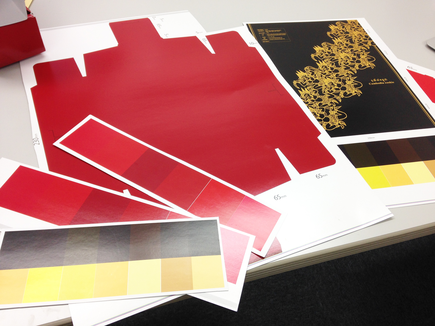 カンボジアで舞い込んできたパッケージデザインの案件ですが、色味確認のために日本側で印刷サンプルを作成しました!