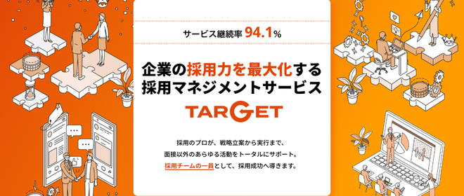 ■MISSION 多くの挑戦があふれる社会の実現 ■VISION 既成概念を乗り越え、持てる力をすべて出し切り、多くの挑戦を支援する ■MIND 1. 利他自責 - りたじせき - 2. 誠実真摯 - せいじつしんし - 3. 自考自動 - じこうじどう - 4. 細心万全 - さいしんばんぜん - 5. 迅速並行 - じんそくへいこう - 弊社はお客様の採用活動を支援するサービス【TARGET】を事業展開しております。