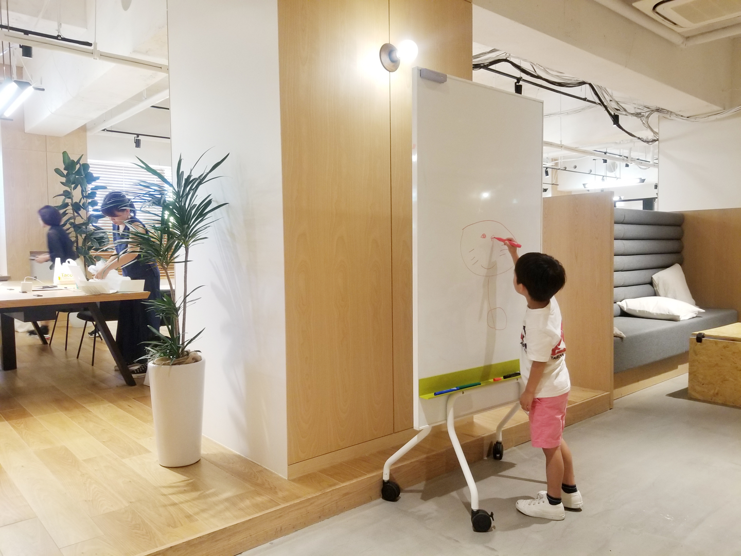中には子どもが苦手だという方もいるかもしれませんが、私の個人的な考えですが大人が仕事をしている場所に子どもが触れることができるのは、子ども成長にとって非常によいなと思っています。年齢もいろいろで、やっていることも様々な人たちがいるコワーキングスペースは、子どもにうってつけの社会勉強(というか人としての成長)の場所ではないかと思っています。