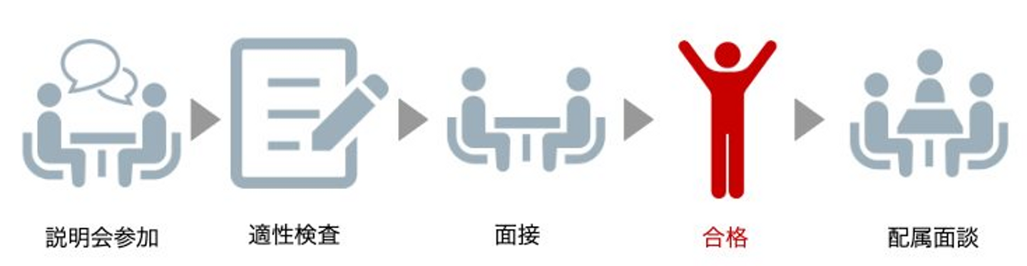 月に2回開催している採用イベントまたは個別オンライン面談に参加後、エンジニア未経験または半年未満の方は適性検査を受検いただき、その後面接を2回(一次:人事担当、二次:代表中瀬)実施後、内定となります。