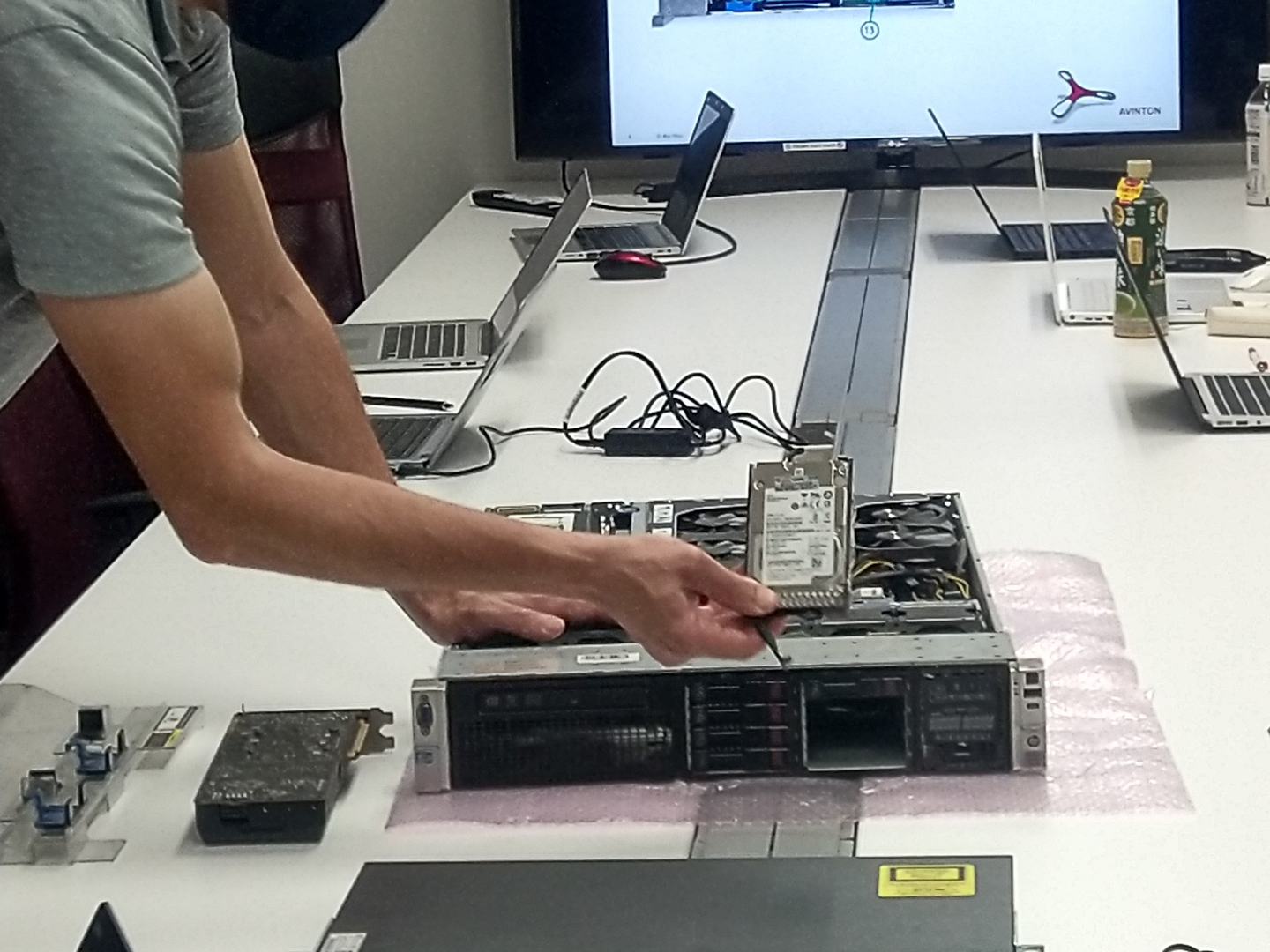 そして、本物のサーバーを部屋に持ち込み、それを見せながら一つ一つの構造について、その役割について、丁寧に説明していきます。