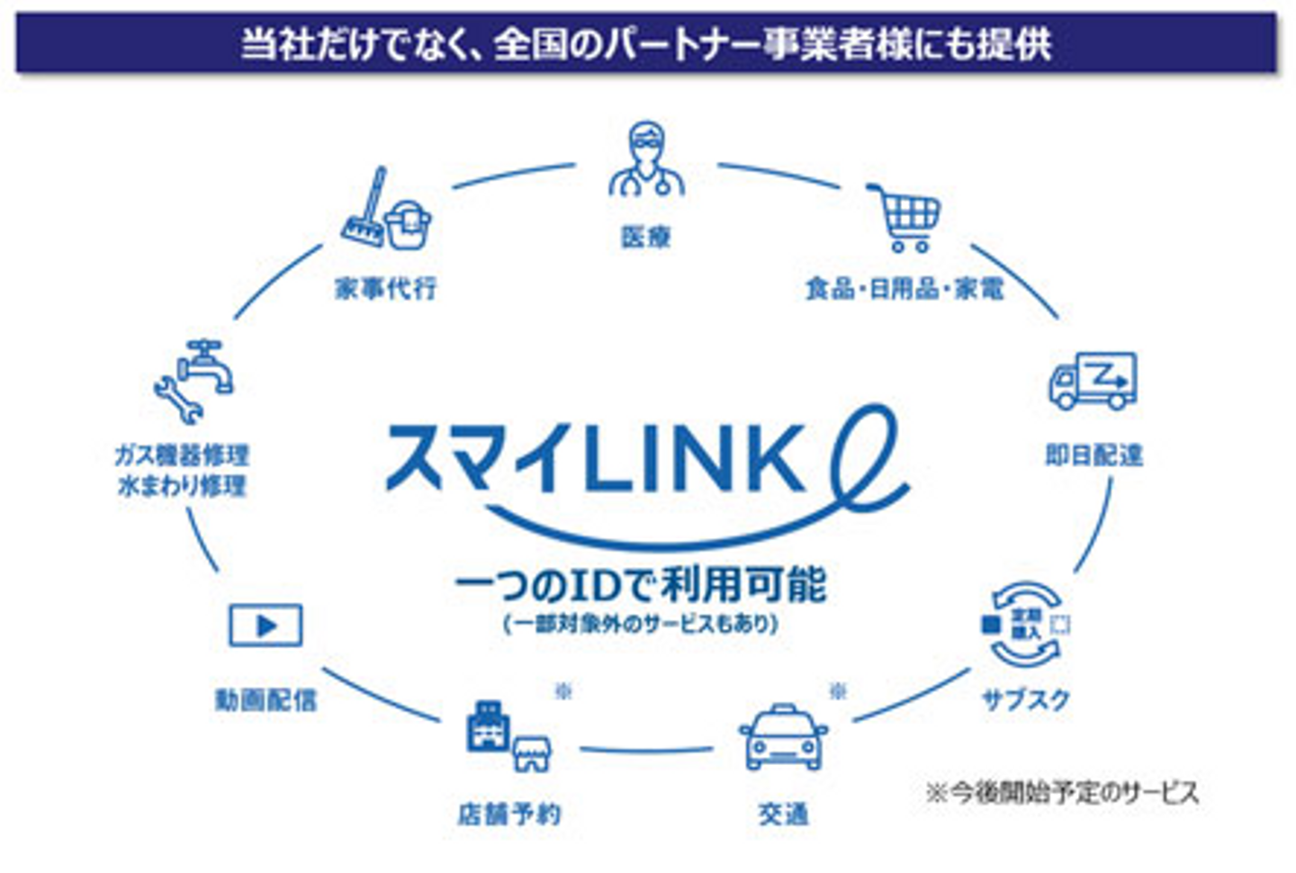 大阪ガスが提供する、「スマイLINK」は様々な事業者と連携して暮らし周りの商品・サービスをご提供することで、暮らしを豊かに便利にするデジタルプラットフォームです。一つのIDで様々なサービスをご利用いただけます。(一部対象外あり)
