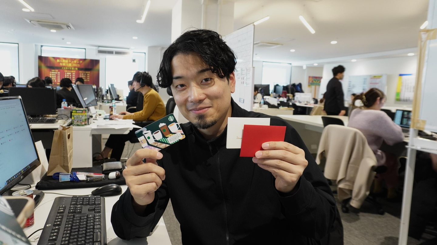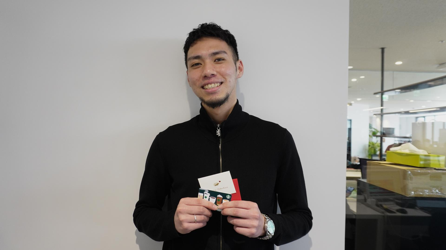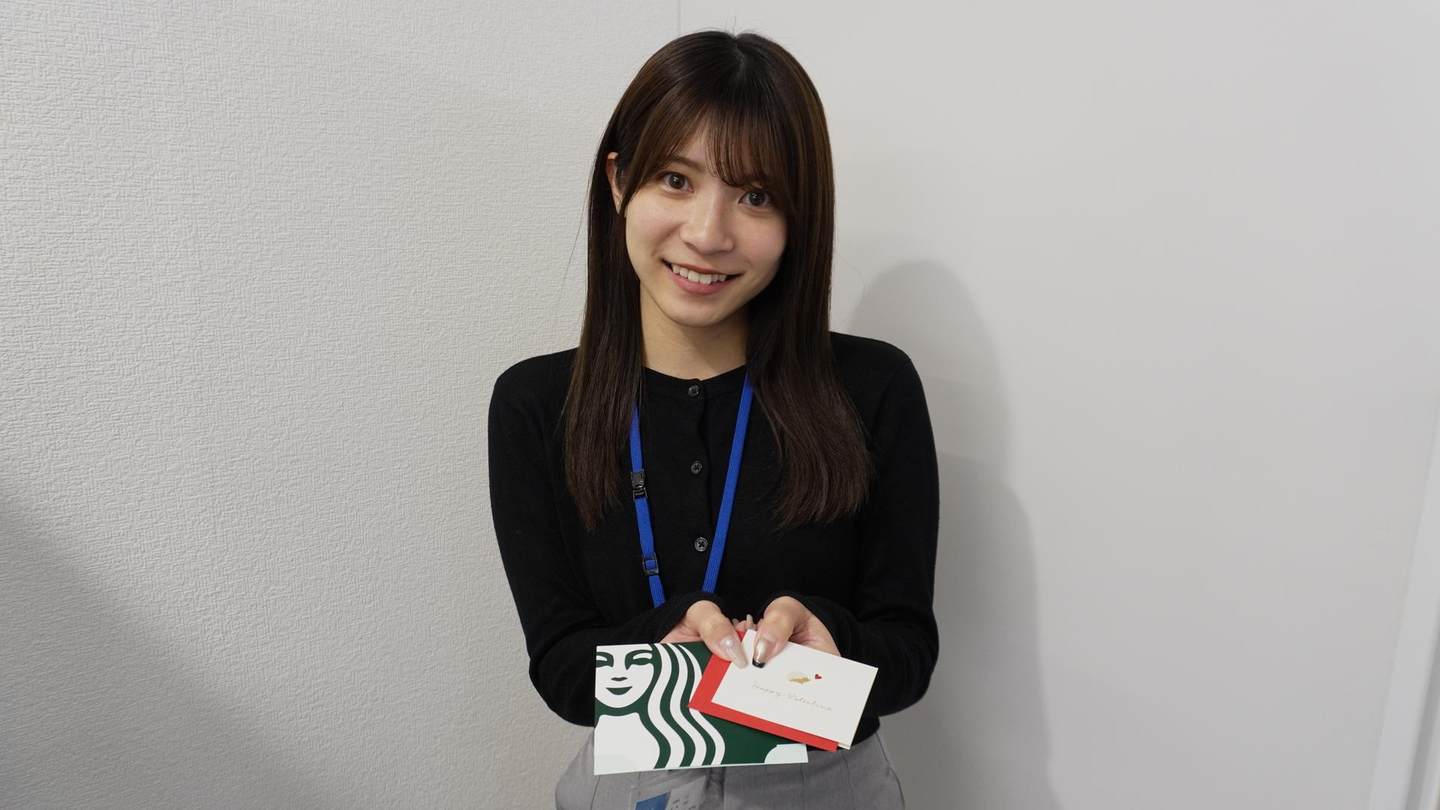 スターバックスのチケットにした理由は、コーヒーを一緒に飲みに行くきっかけになったらいいなぁと、ちょっとした「お誘いカード」のつもりで渡しました。