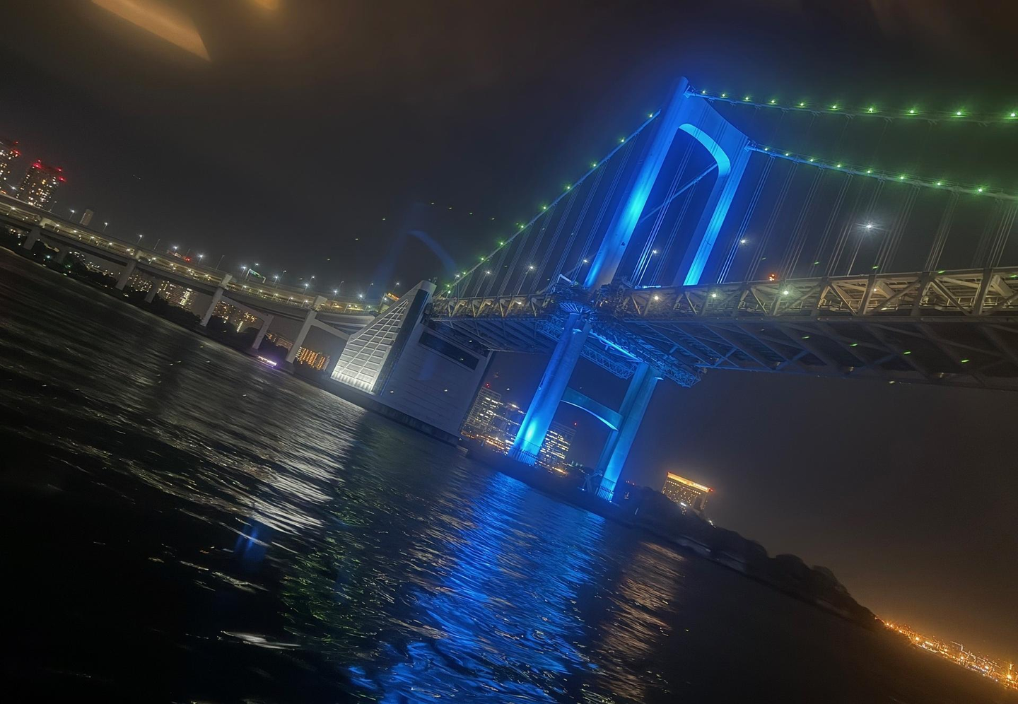 スカイツリー、レインボーブリッジをはじめとした東京湾沿いのランドマークが次々と姿を見せ、船上からは街の明かりが海面に反射する幻想的な光景が広がりました。
