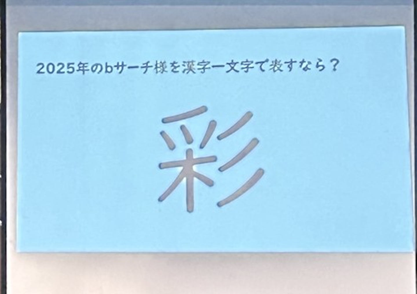 会場が各社の笑い声や感嘆の息に包まれる中、bサーチに選ばれた漢字は 「彩」 でした。
