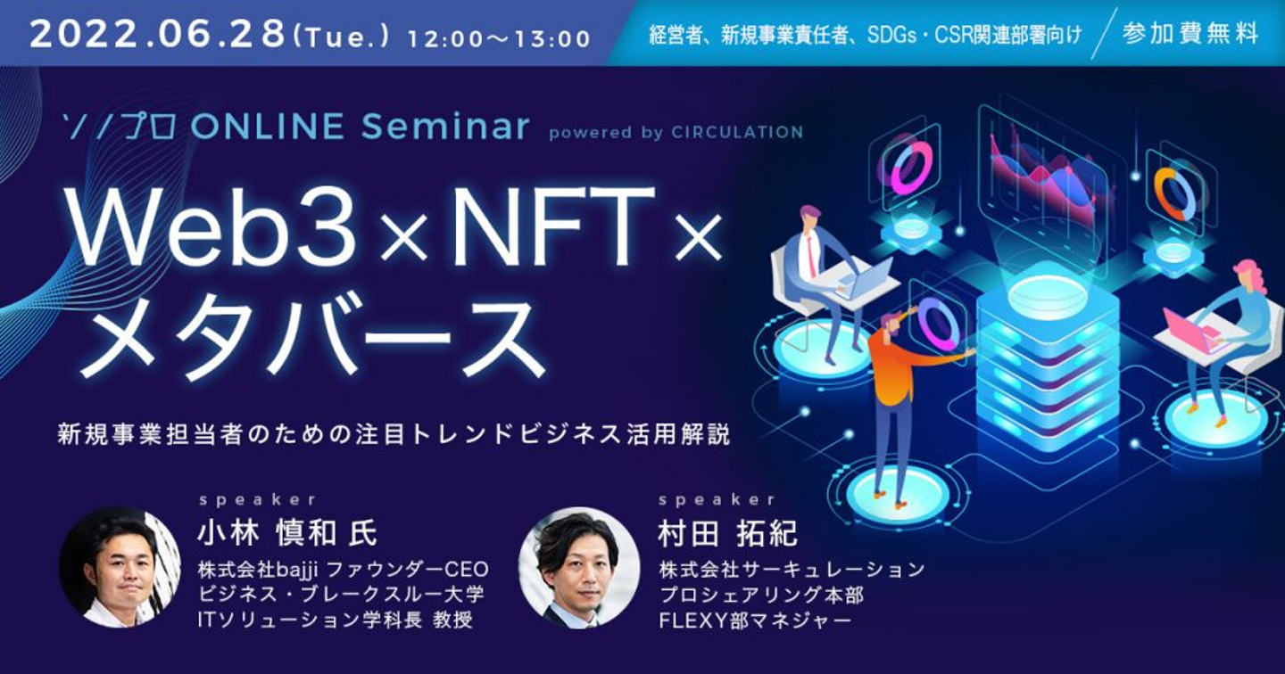 代表の小林が「【Web3×NFT×メタバース】新規事業担当者のための注目トレンドビジネス活用解説」(主催:株式会社サーキュレーション)に登壇します