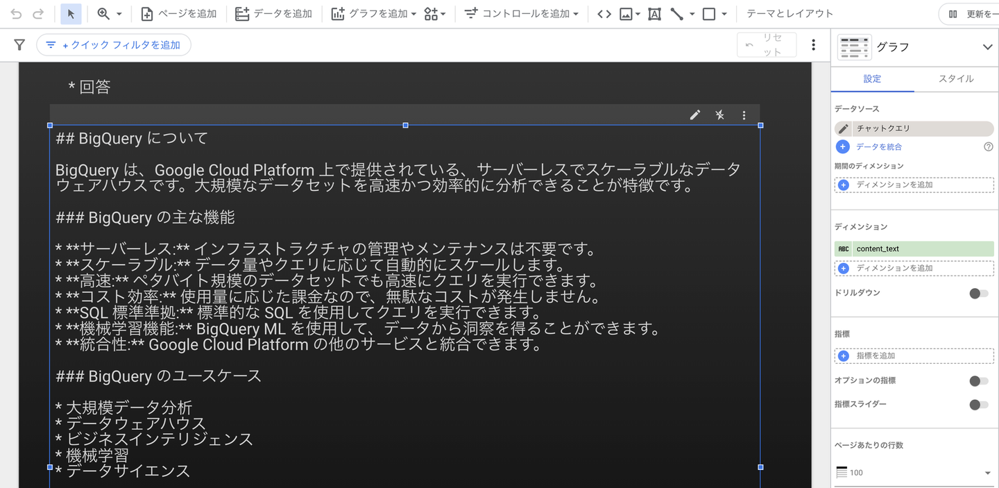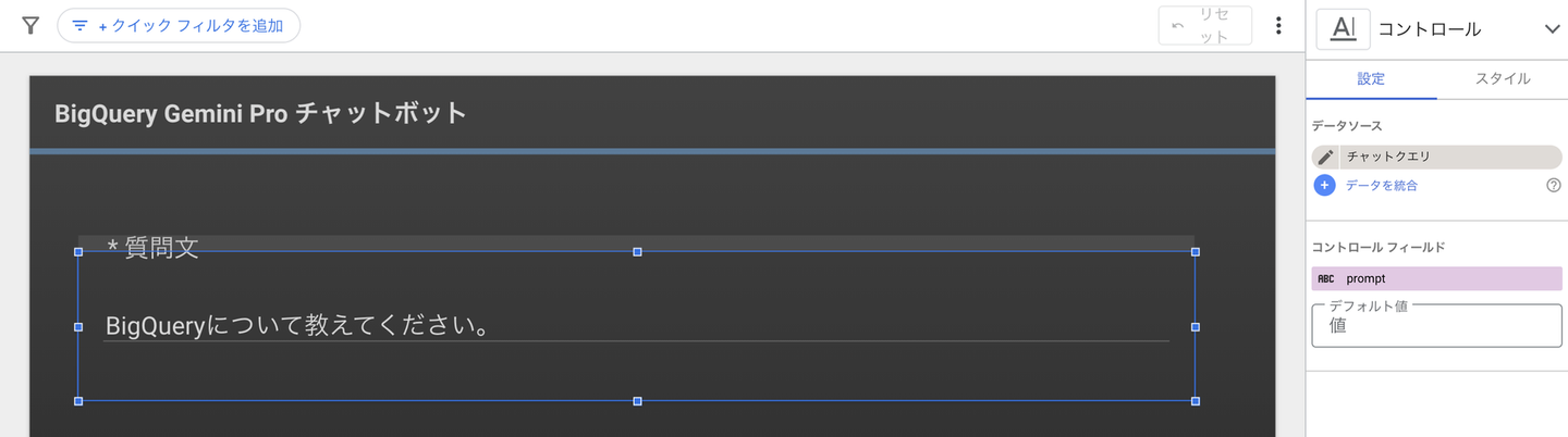 Google Cloud側の前準備が完了したら、Looker Studioのチャットボット画面を作成します。