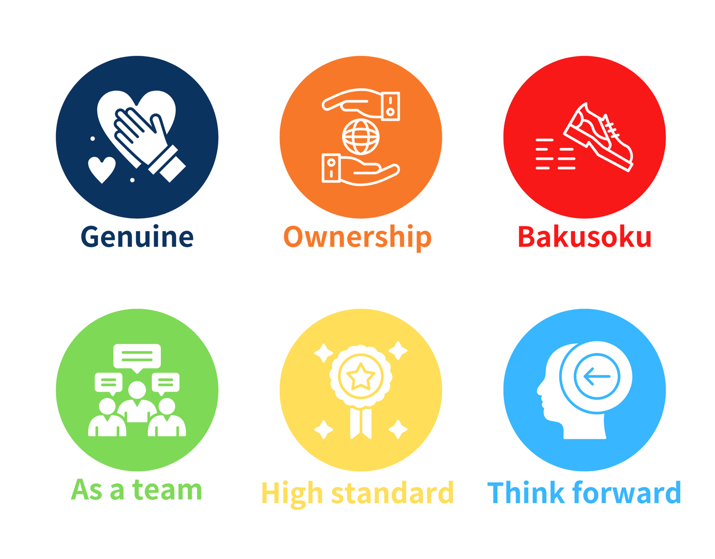 すべては「理想を超え続ける」ために。私たちはこの6つのValueを貫き、挑戦し続ける集団です。