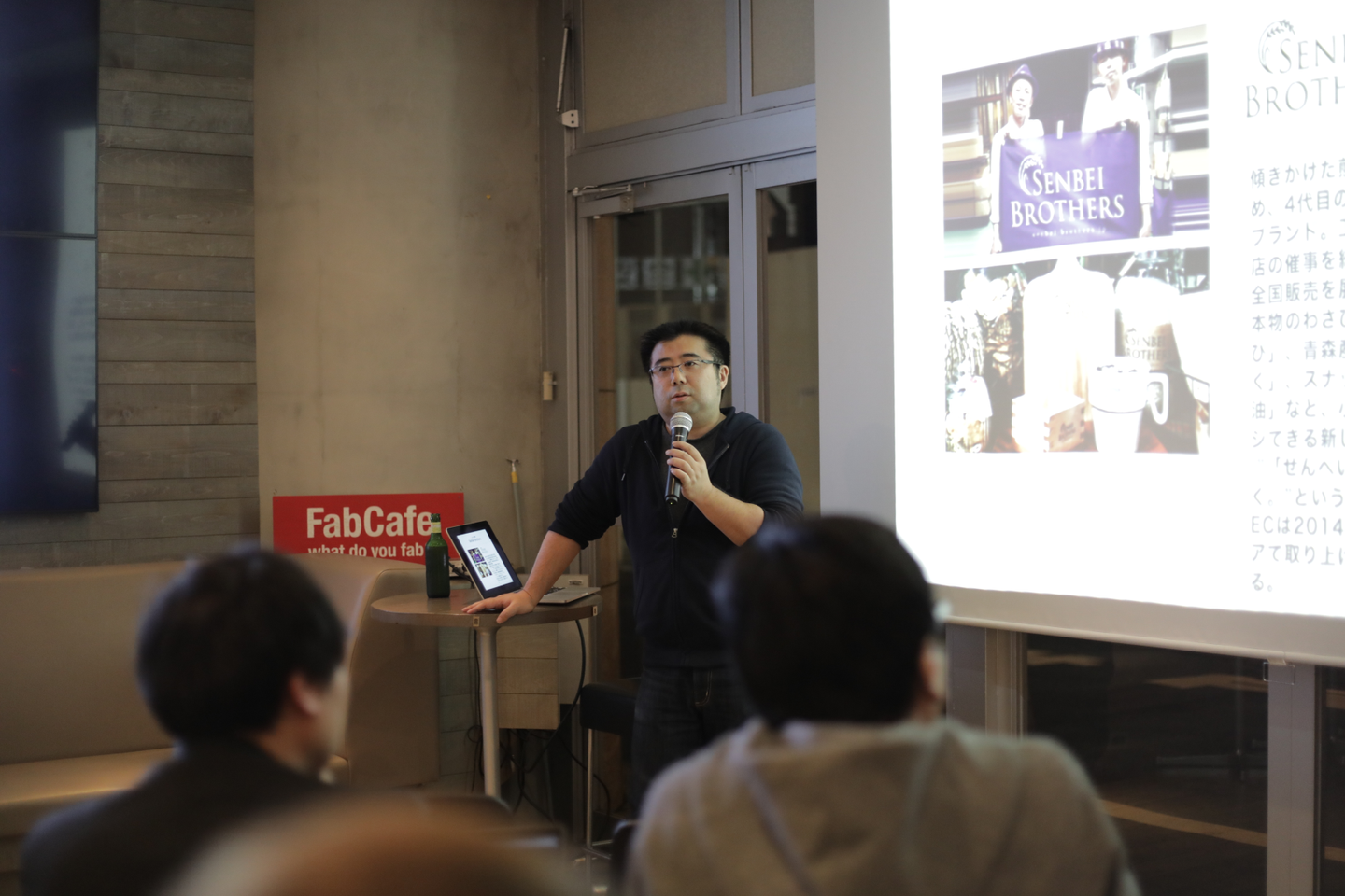 乾杯のあとは、弊社CTOの藤川から弊社のご紹介をさせていただきました。