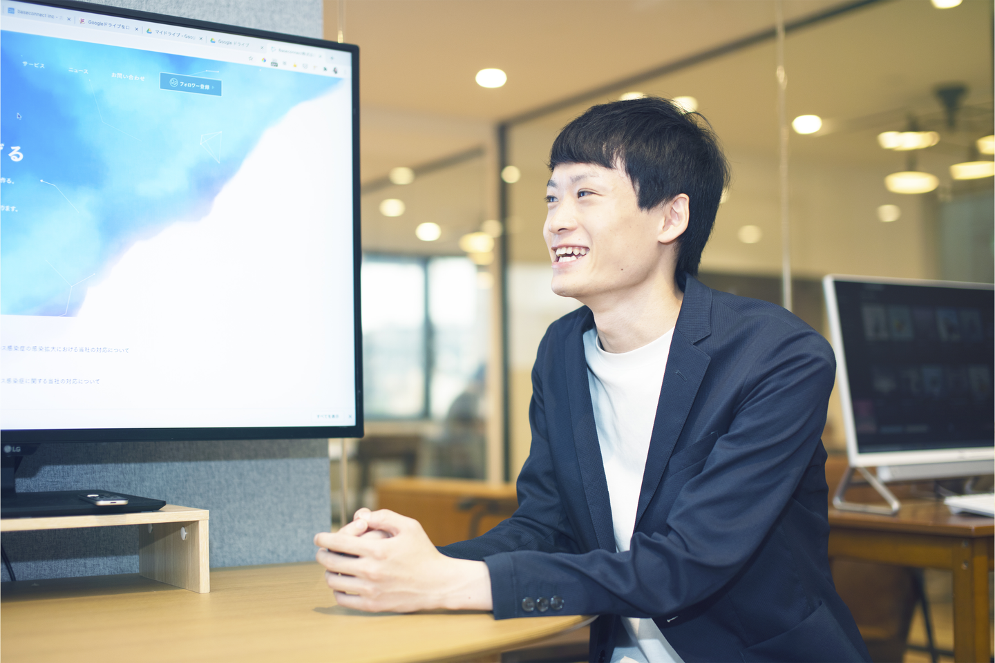 そこで、1回生では海外留学に行き、サークル内ではリーダーを務めるなど、自分を成長させるために様々なトライをしました。そうして2回生も後半に差し掛かった頃、就職した先輩から仕事の話を聞くうちに、ビジネスという結果が求められるフィールドが一番成長出来るのではないかと思い始めたんです。そうしてインターン先の企業を探し始め京都では珍しいベンチャー企業のBaseconnectの存在を知り、すぐにここで働こうと決めました。