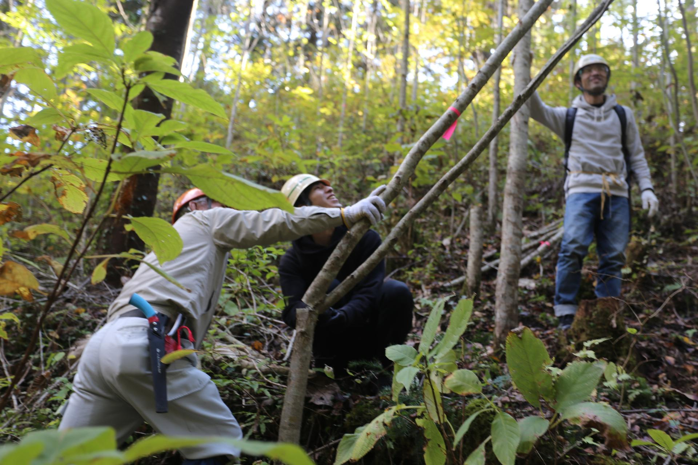 林業に携わる方々の職人技と労力を体感しつつ、一本の木を伐採するうえでのこだわりなどを学ぶことができました!