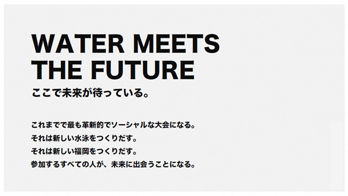 国際水泳連盟(FINA)の主催で2年に1度開催される、水泳界においてオリンピックに次ぐ重要な国際大会。競泳、飛込、ハイダイビング、水球、アーティスティックスイミング、オープンウォータースイミングの6競技で構成され、各種目で世界一の座を競います。1973年の第1回ベオグラード大会から、参加選手、参加国・地域、放送国・地域数ともに増加を続け、2022年の福岡大会で19回目を迎えます。