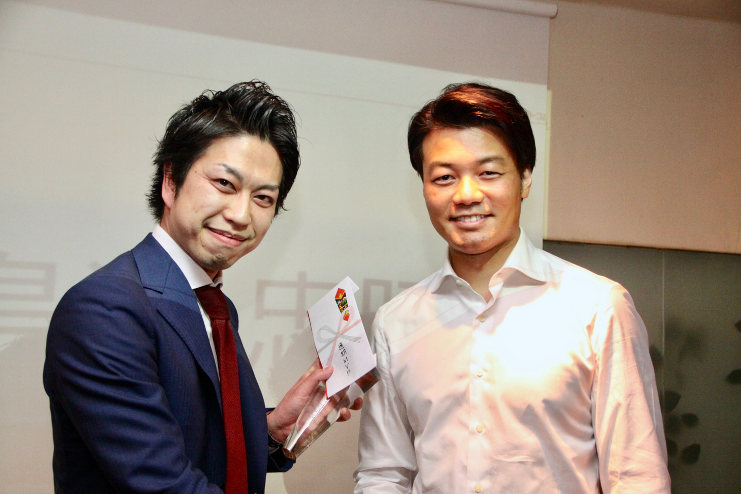 2015年の年間MVPを受賞した時の写真。創業者の元榮と一緒に撮影した1枚。