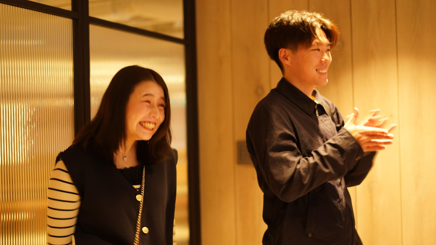 来てくれたのは、昨年度長期インターン卒業生にして、昨年度長期インターン年間MVP!現在は、株式会社クイックとレバレジーズ株式会社で活躍している2人がお祝いに駆けつけてくれました。