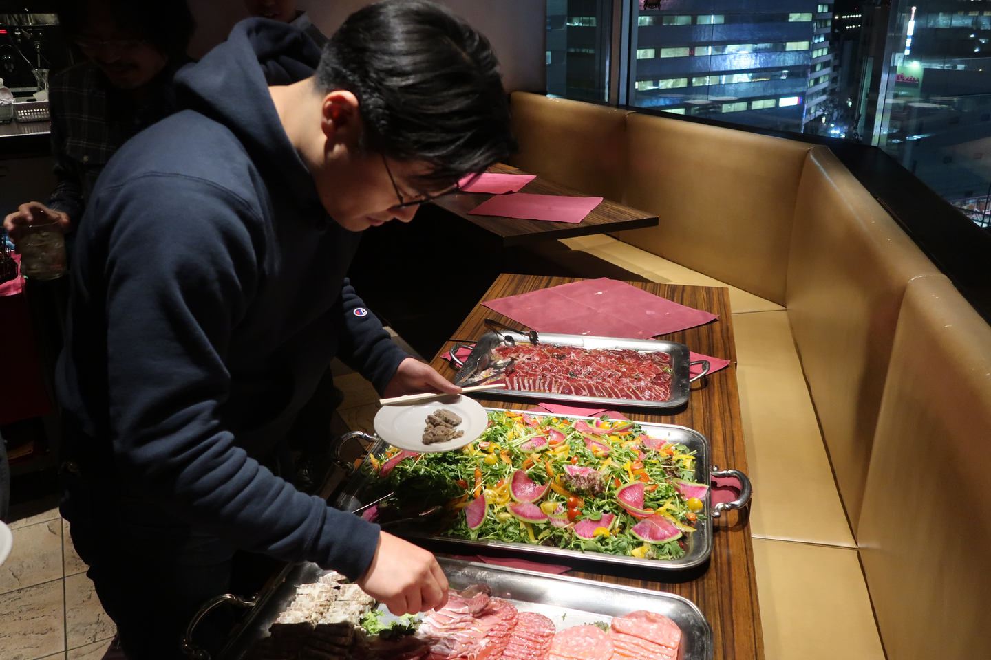 アラカルト、サラダ、お肉料理、ピッツア、デザートなど次々と運ばれてきました。お料理食べて、お酒を飲んで、メンバーとお話しているとあっという間にお開きの時間です。